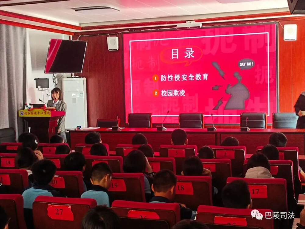 “同学们,你们知道什么是校园欺凌吗?”“遇到坏人想要对你进行不法侵害我们该怎样保护自己呢?”在一堂生动的法治教育课上同学们热烈参与到上述问题的讨论。 为进一步加强对未成年人特别是已满14周岁的司法保护,提高未成年人的法律知识和防范意识,增强未成年人对新型毒品如依托咪酯的鉴别和危害认识。岳阳县司法局张谷英司法所联合镇派出所、综治办、禁毒办,于2023年10月11日深入张谷英镇中心学校开展以防止校园性侵、校园欺凌和新型毒品危害宣传教育为主题的“利剑护蕾”法治进校园教育宣传活动。