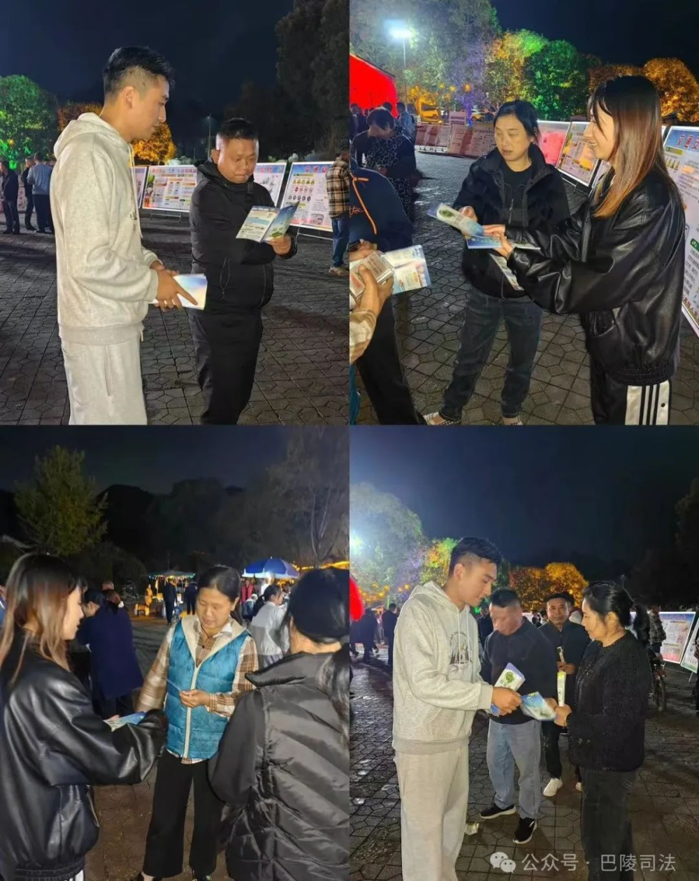 10月24日,张谷英司法所工作人员来到活动现场,与张谷英镇应急办、综合行政执法大队、派出所等相关部门的工作人员一道,搭建民间舞台,陈列宣传展板,悬挂宣传横幅。活动现场气氛热烈,村民们纷纷驻足观看,对民间舞台、展板上的法律知识表现出了浓厚的兴趣。 活动分为两个环节同时进行,舞台下,张谷英司法所的工作人员通过面对面讲解、发放宣传资料等多种形式,向村民们普及了利剑护蕾、毒品预防、扫黑除恶、药品安全、燃气安全以及道路交通安全等与日常生活密切相关的法律知识,耐心解答他们提出的法律问题,并鼓励他们遇到法律问题时积极寻求法律援助,依法维护自己的合法权益;舞台上岳阳县公安局交警大队交警们结合当前农村地区的实际情况,通过情景模拟、宣讲等方式重点讲解了农村交通安全的重要性和常见的交通违法行为及其后果,并且通过引导村民们自觉遵守交通规则,共同维护农村交通安全。