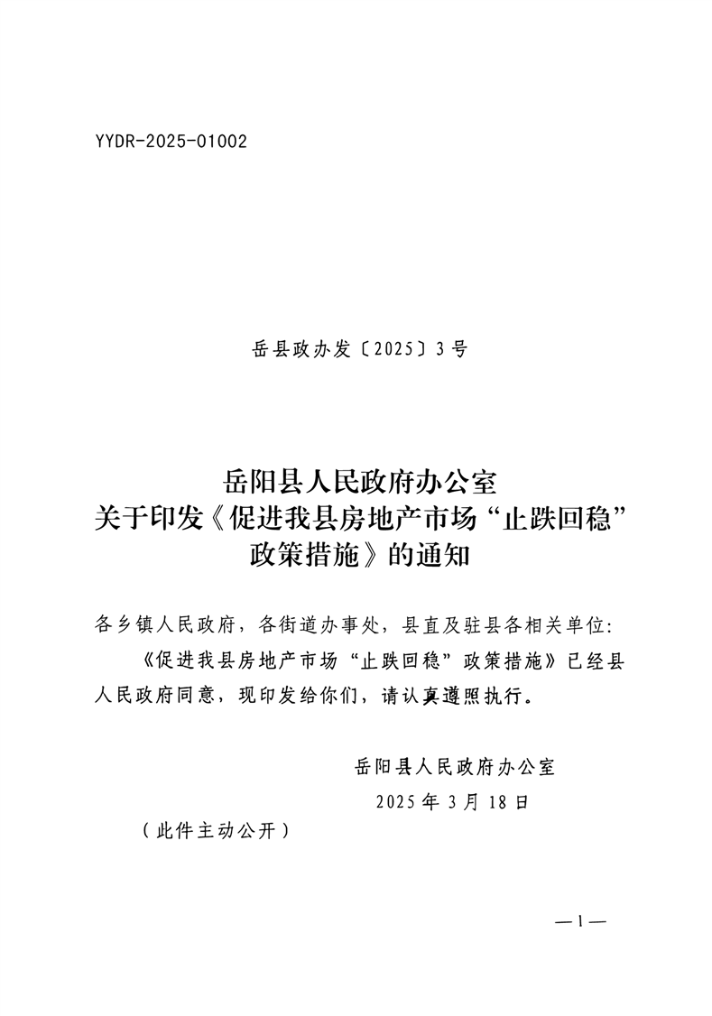 关于转发岳阳县《促进我县房地产市场“止跌回稳”政策措施》的通知