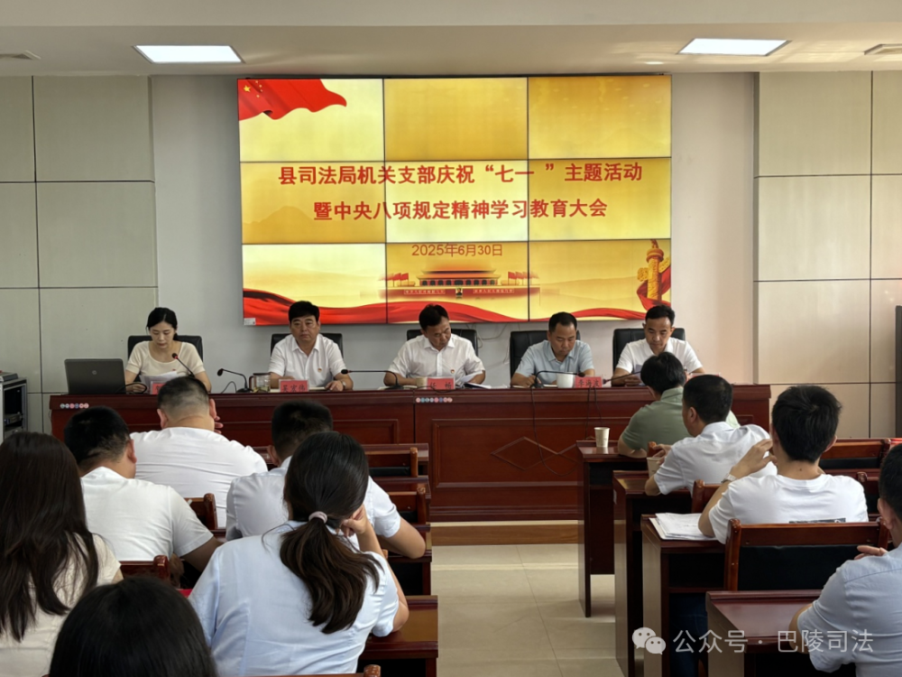为庆祝中国共产党成立104周年,持续推动深入贯彻中央八项规定精神学习教育走深走实,提升基层组织生活质效,强化党员党性教育,激发党组织活力,6月30日上午,岳阳县司法局机关支部庆祝“七一”主题活动暨半年度工作讲评会。