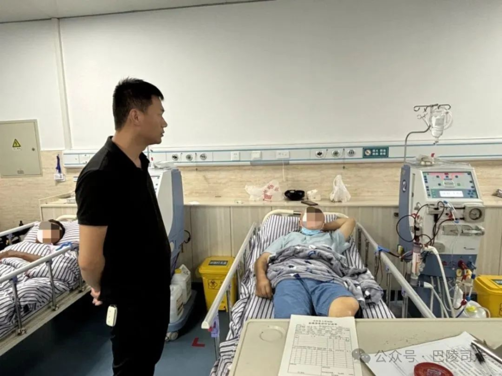 随后,杨所长一行来到市中心医院肾内科病房,探望因尿毒症住院治疗的社区矫正对象陈某。陈某因病需每周进行血液透析,长期的治疗不仅给他的身体带来痛苦,也给家庭带来了沉重的经济负担。这导致他情绪一度十分低落。走访中,杨所长坐在病床前,详细询问了他的病情进展、治疗效果以及家庭生活情况,耐心倾听他在治疗过程中遇到的困难。杨所长鼓励他要保持乐观积极的心态,相信现代医学的力量,同时表示会积极协调民政等部门,在政策范围内为其申请救助,减轻经济负担。临别时,杨所长特别嘱咐医护人员关注陈某的心理状态,给予更多关怀。