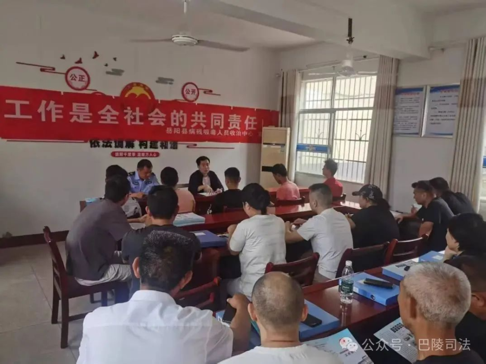 普法宣传进基层,筑牢全民禁毒防线02 除校园主阵地外,岳阳县司法局同步将禁毒宣传延伸至社会基层,构建‘校园+社会’联动防线。岳阳县病残吸毒人员收治中心联合长湖乡司法所、综治中心,在长湖乡、新墙镇人员密集区域悬挂横幅、张贴海报,向群众发放《禁毒法律法规》《毒品危害案例》等资料1000余份,并开展毒品知识讲座,结合真实案例解析毒品种类及危害。 ![]()