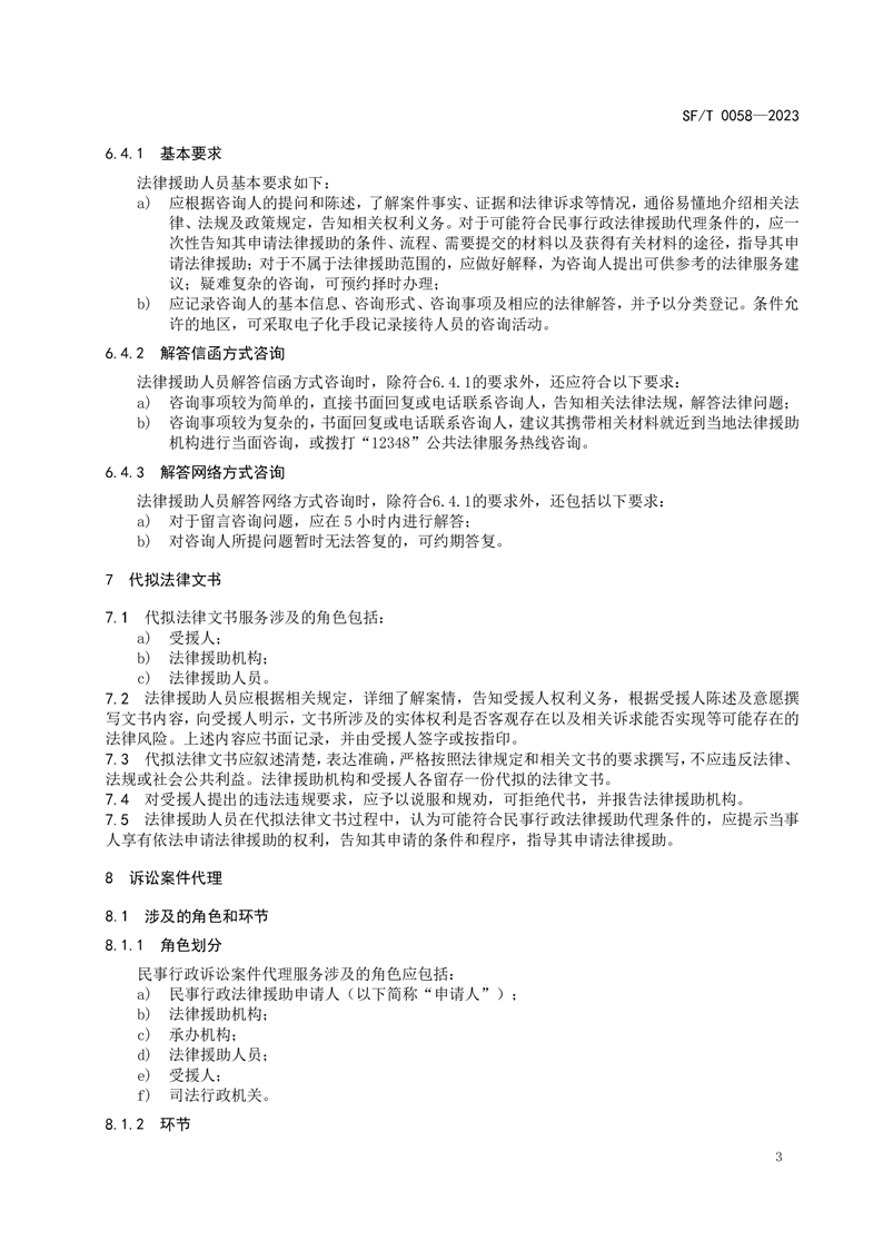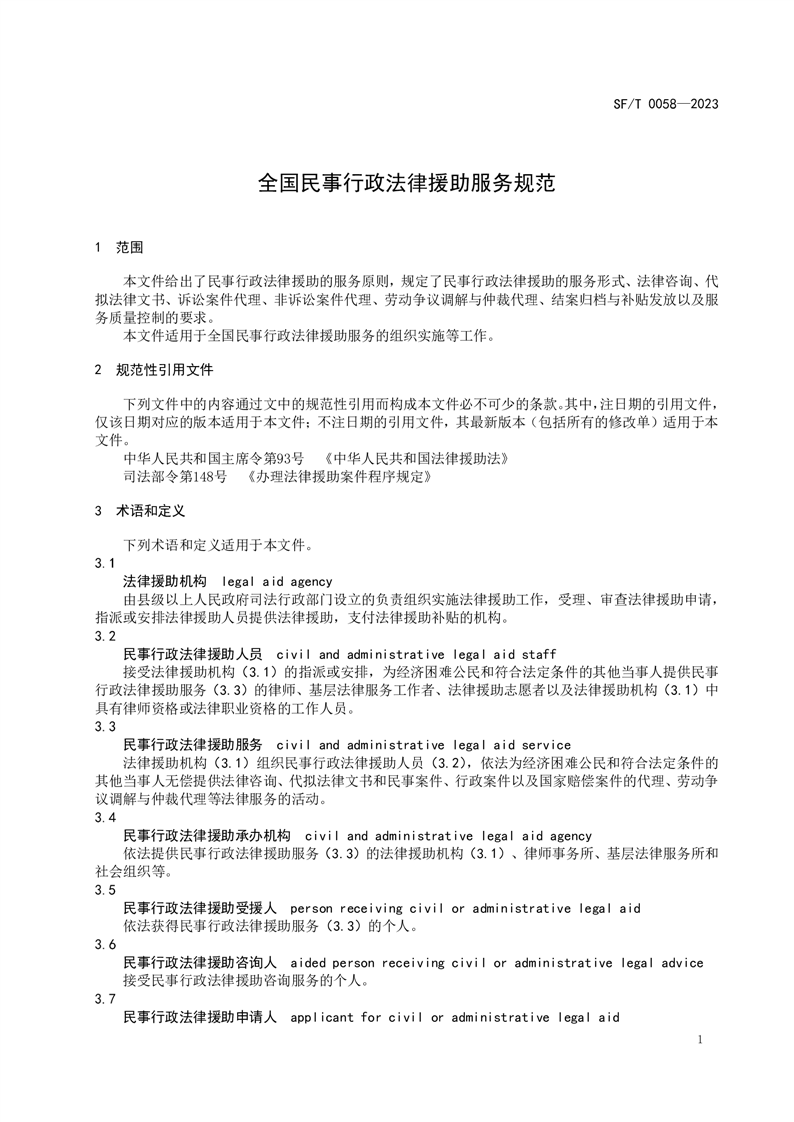 全国民事行政法律援助服务规范