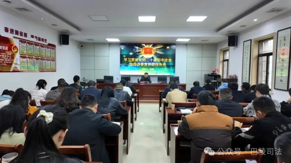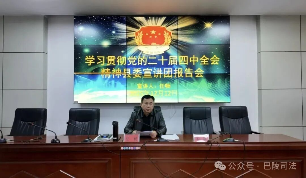 12月12日,在学习贯彻党的二十届四中全会精神县委宣讲团报告会上,县司法局局党组书记、局长任畅围绕“高举思想旗帜勇担法治使命 以司法行政工作现代化护航十五五高质量发展”主题,为全局干部进行专题授课。