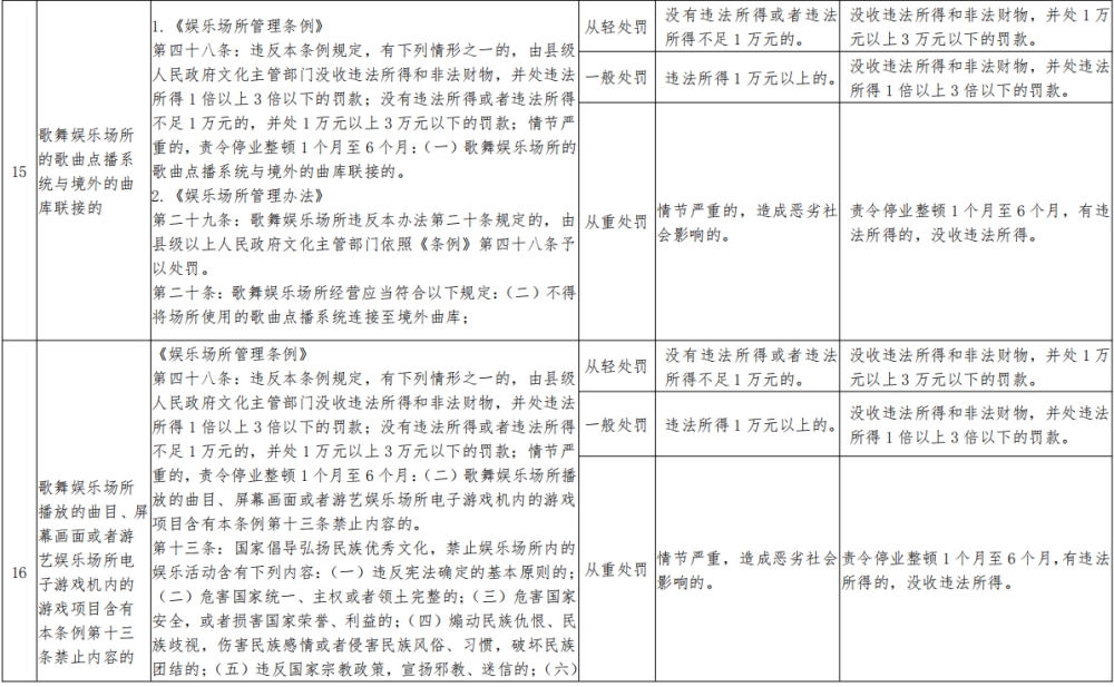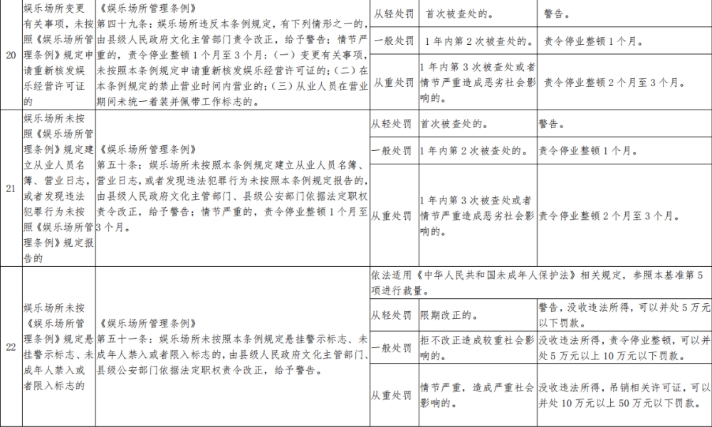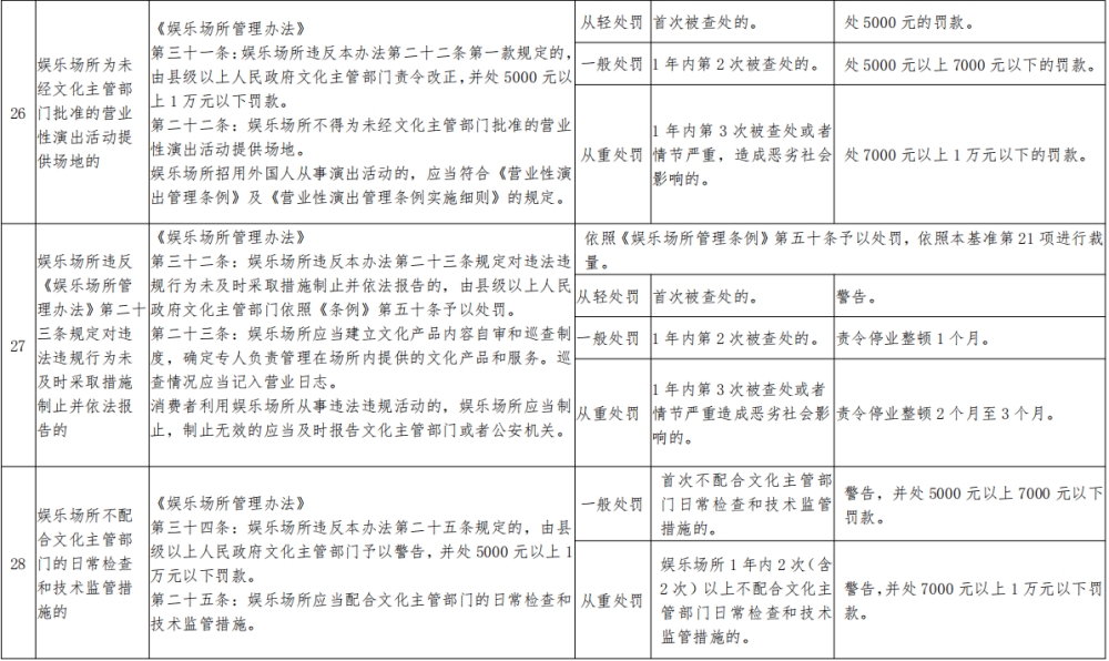 | 一级事项 | 行政处罚 | 二级事项 | 对娱乐场所违法行为的行政处罚 |
