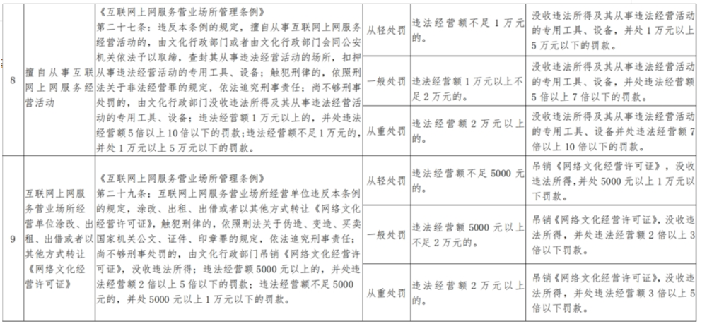 | 一级事项 | 行政处罚 | 二级事项 | 对互联网上网服务营业场所违法行为的行政处罚 |