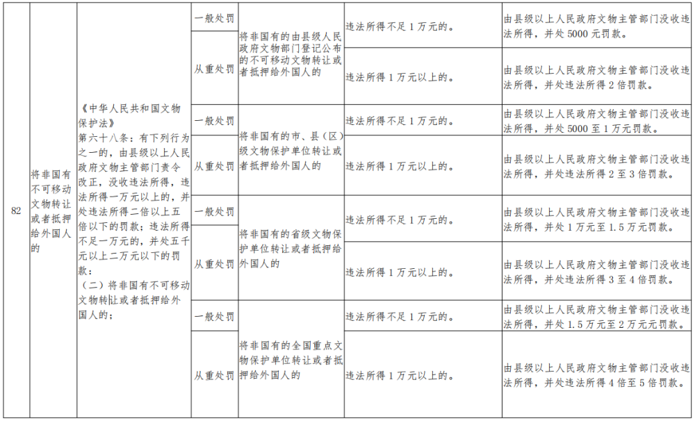 | 一级事项 | 行政处罚 | 二级事项 | 对将非国有不可移动文物转让或者抵押给外国人的行为进行处罚 |