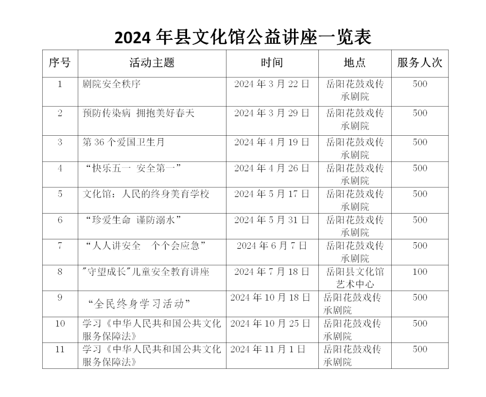 2024年县文化馆公益讲座一览表