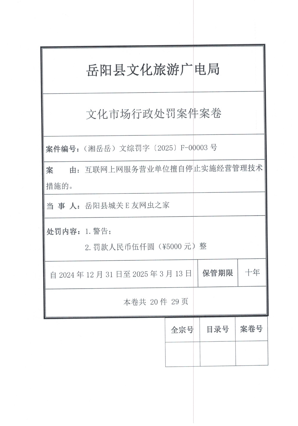 (湘岳岳)文综罚字(2025)F-00003号