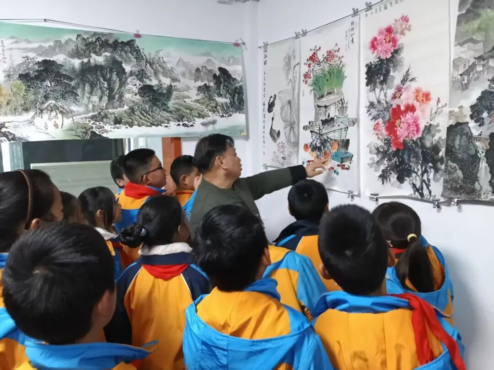 画展初体验,笔墨见精神 活动未始,意趣已生。在讲座正式开始前,孩子们在活动大厅兴致勃勃地参观了丁罗建老师的个人国画作品展。一幅幅精美的画作悬挂于墙,或山水空灵,或花鸟生动,或人物传神。丁老师亲自为孩子们讲解每幅作品的创作历程与艺术构思,让小小参观者们对国画艺术有了直观而深刻的第一印象。 ![]() ![]()