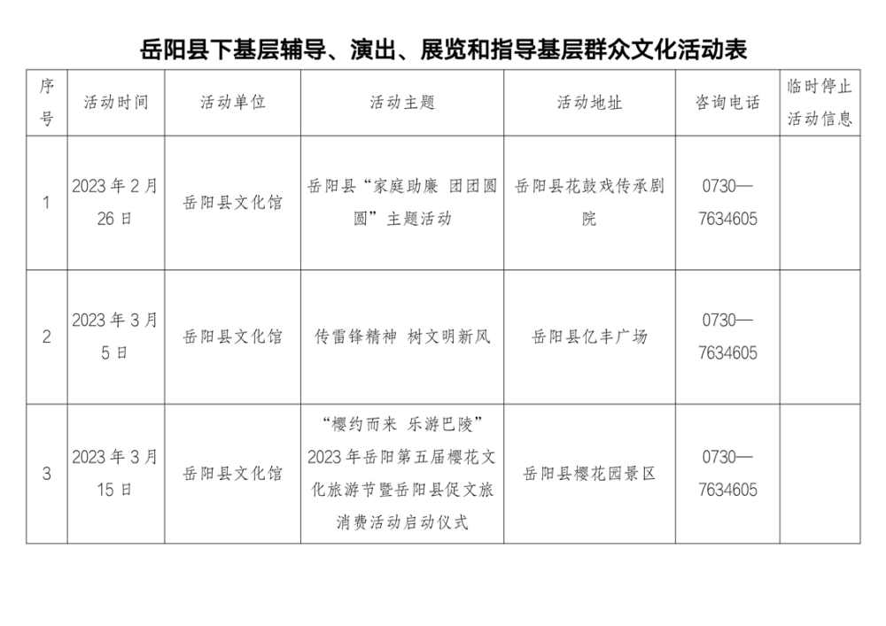 | 公开主体 | 岳阳县文化旅游广电局 | ||