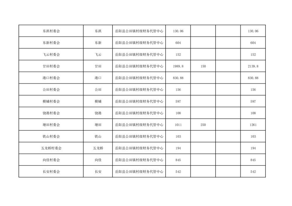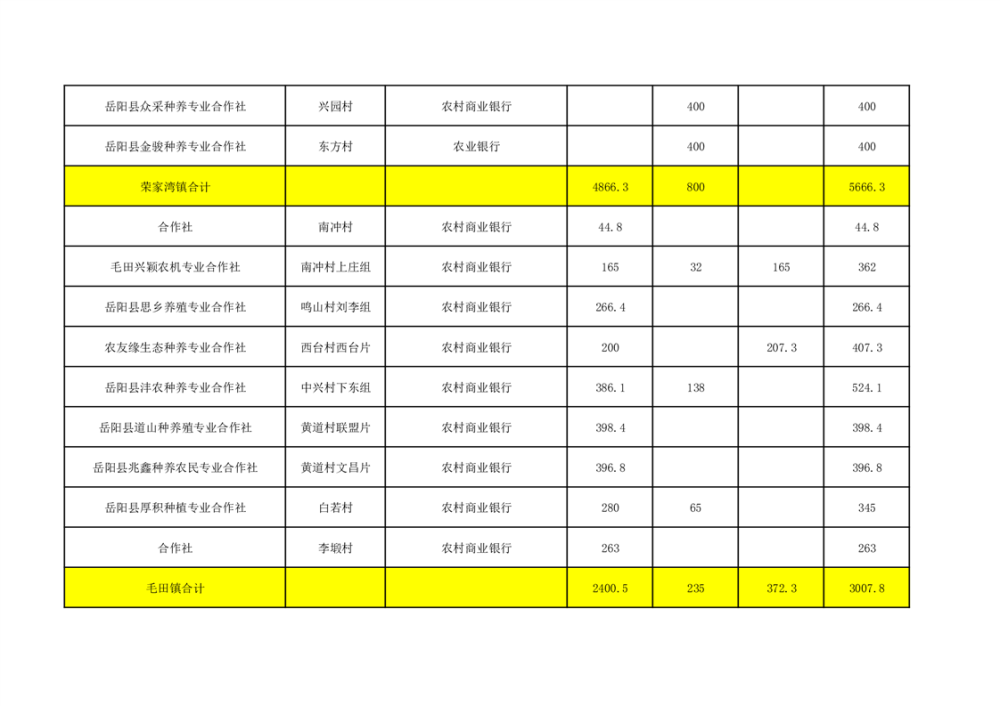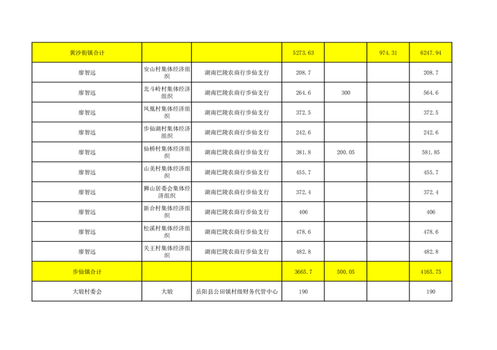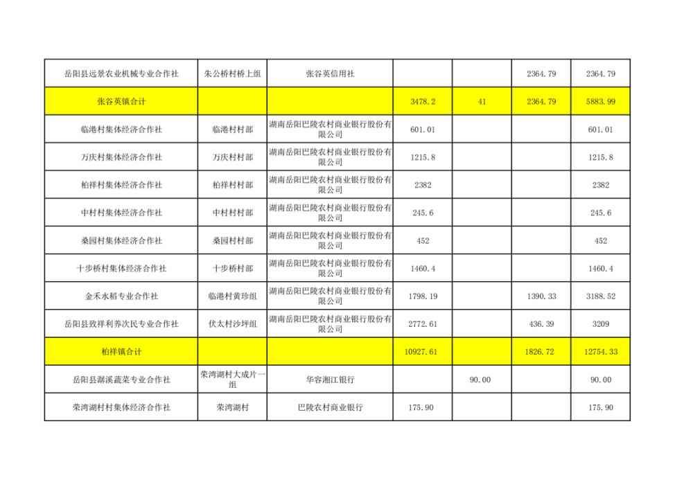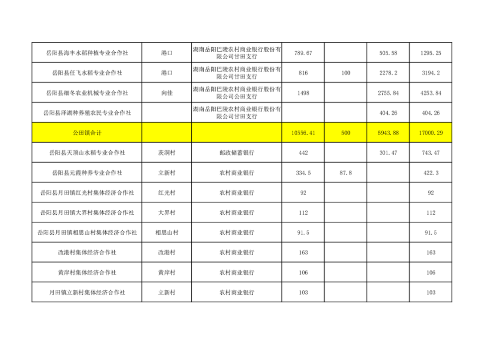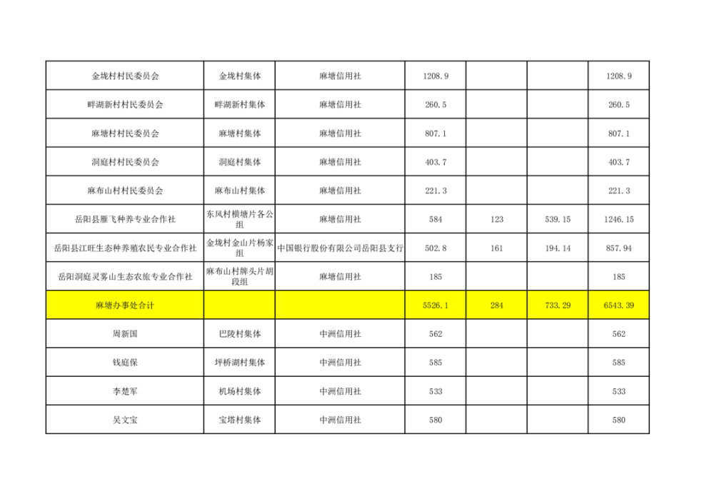 2023年岳阳县实际种粮农民一次性补贴发放明细表(对公账户)