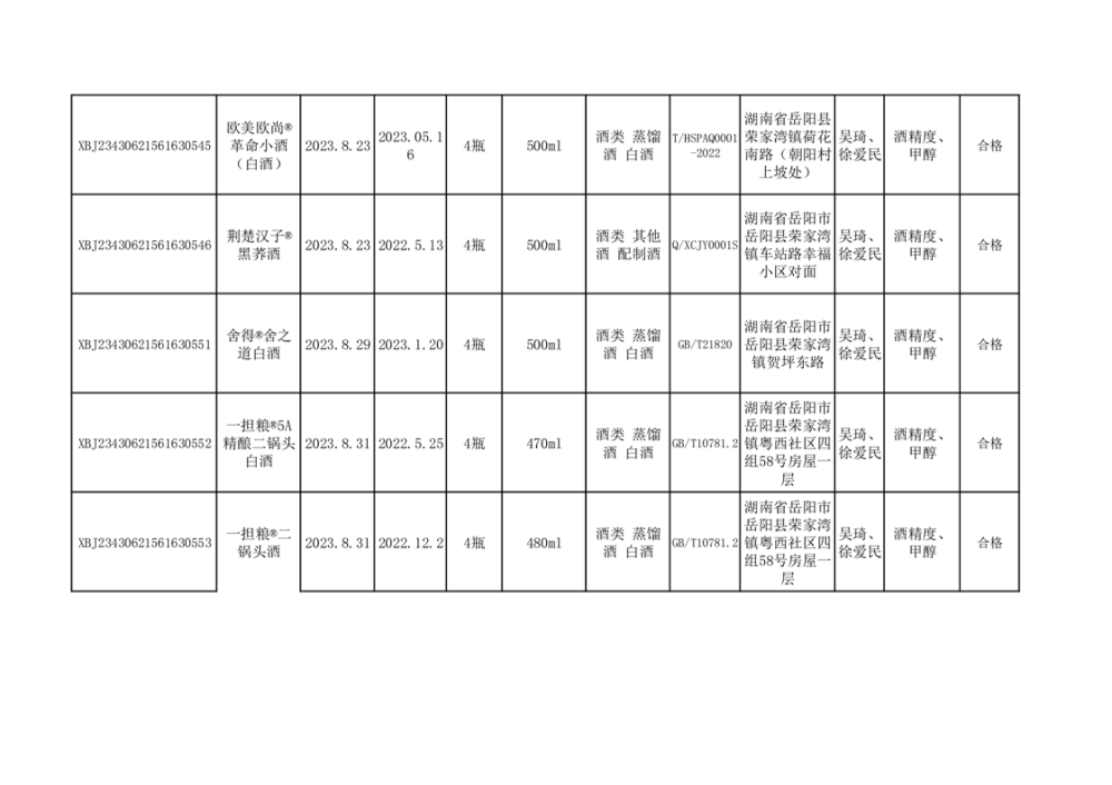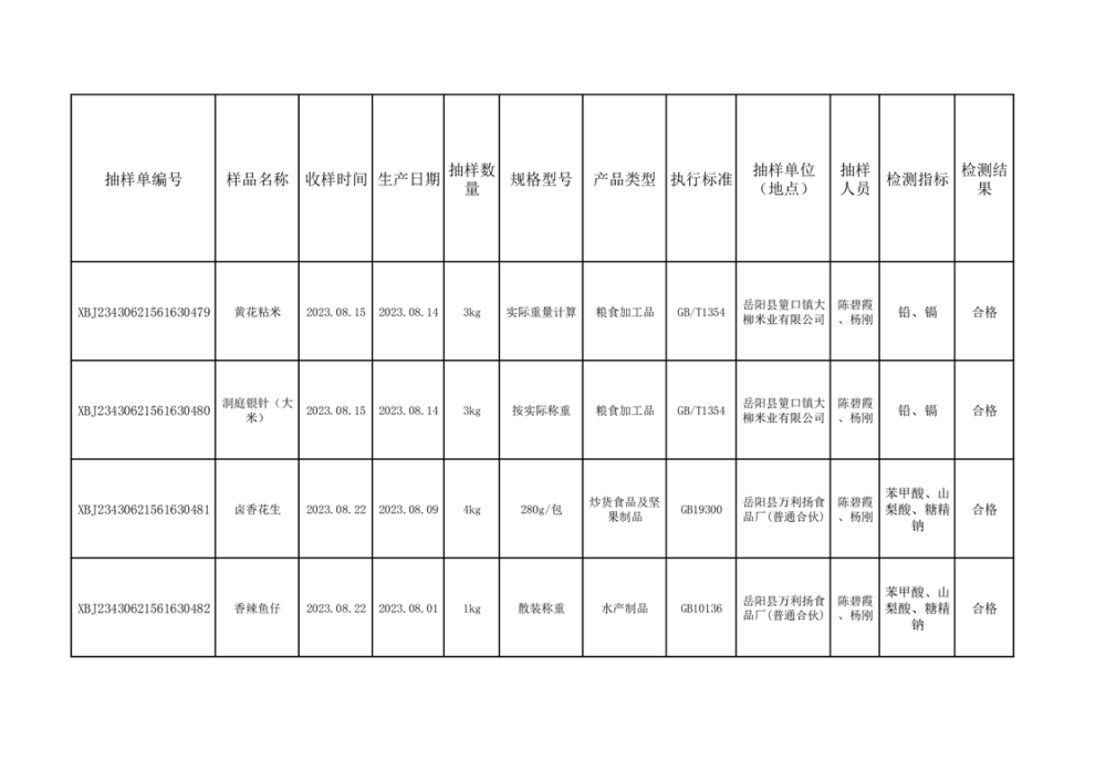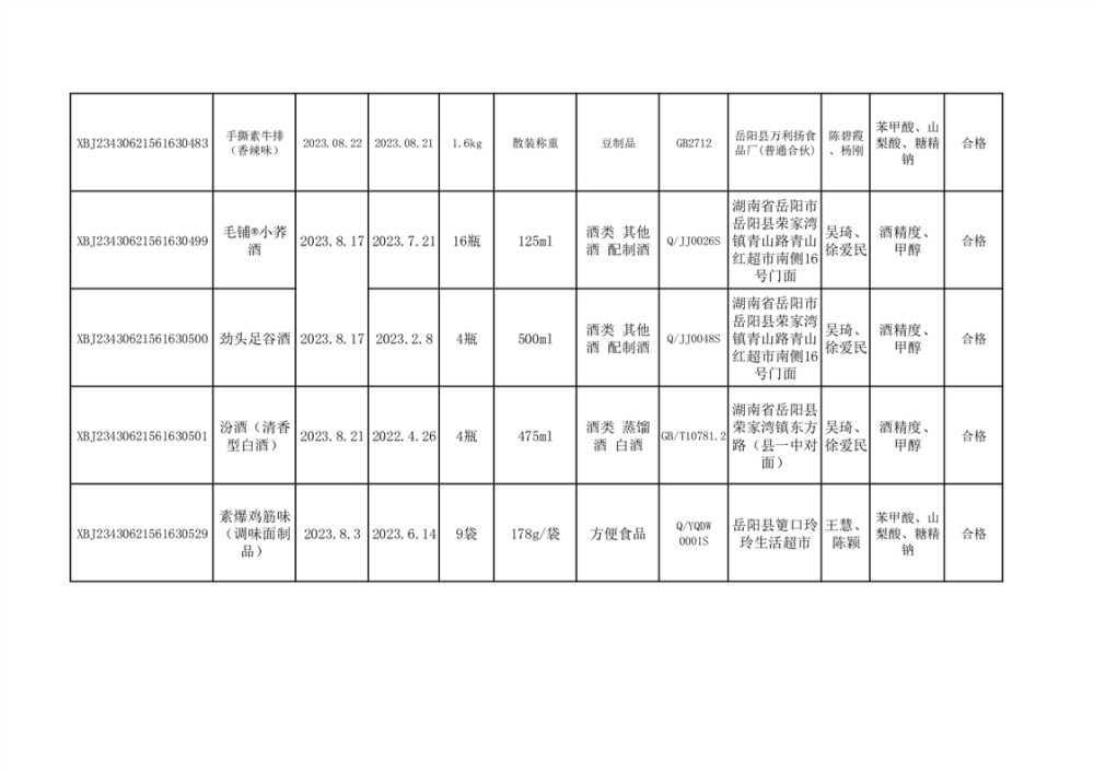 2023年8月合格品公示(31批次)