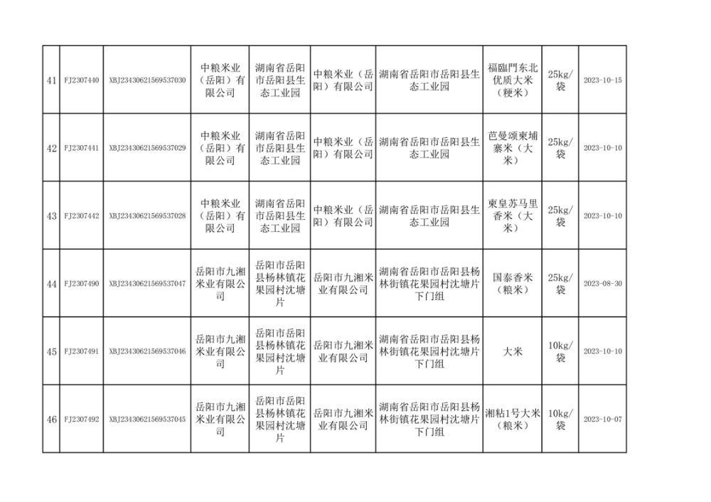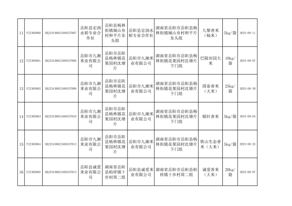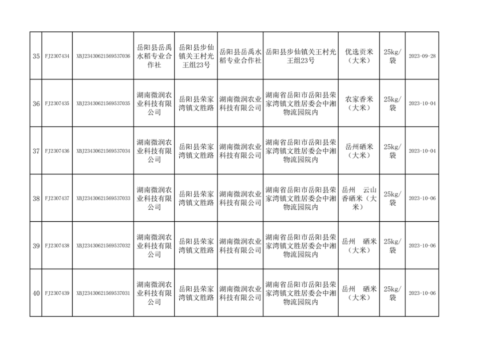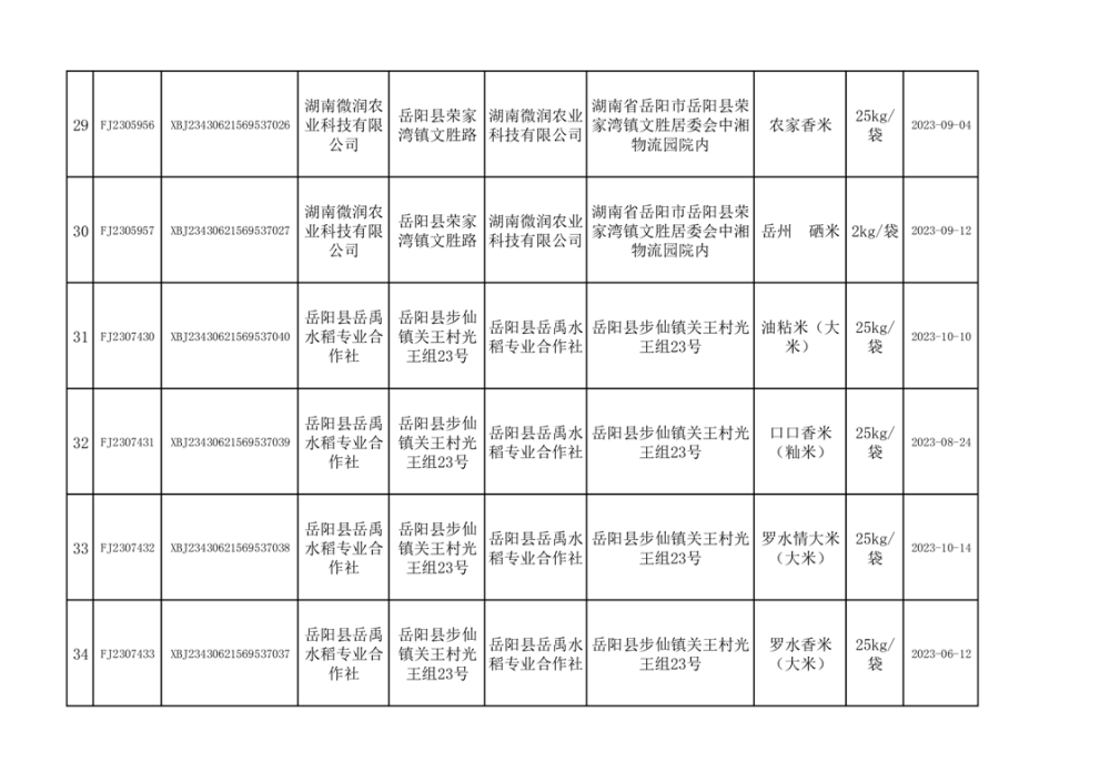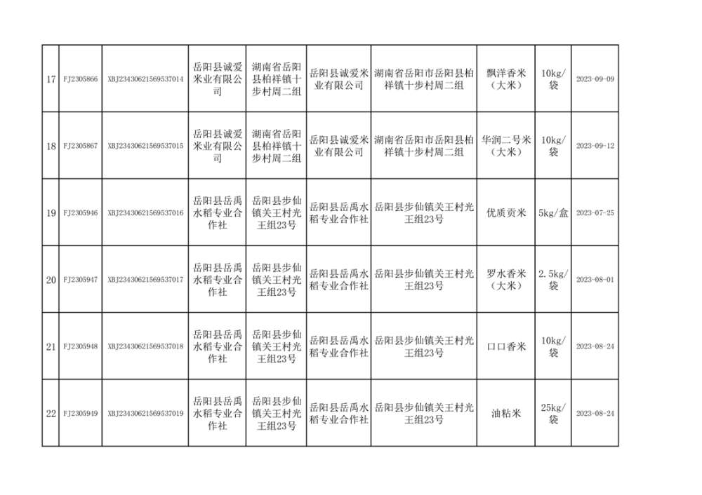 2023年10月岳阳县抽检合格产品信息公示(50批次)