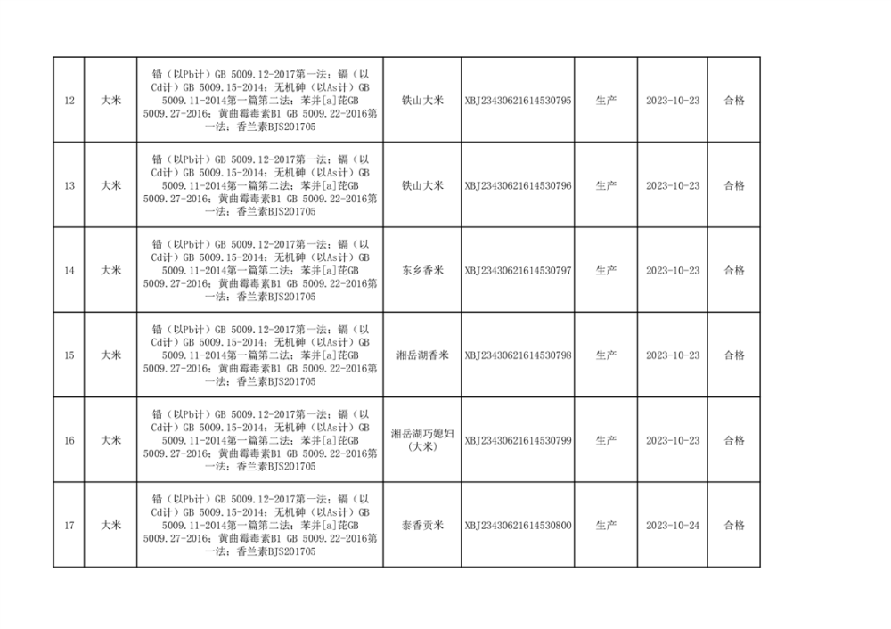 2023年食品抽检产品信息公示(19批次)