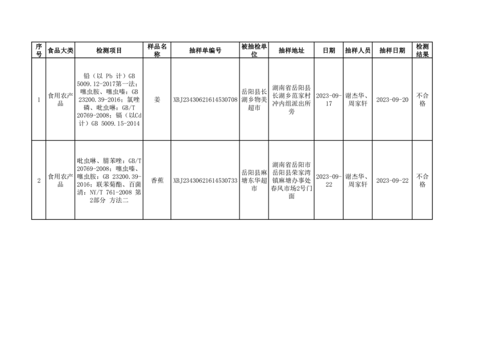 食用农产品不合格抽检信息公示(2批次)