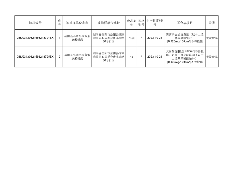 抽检不合格信息公示(2批次)