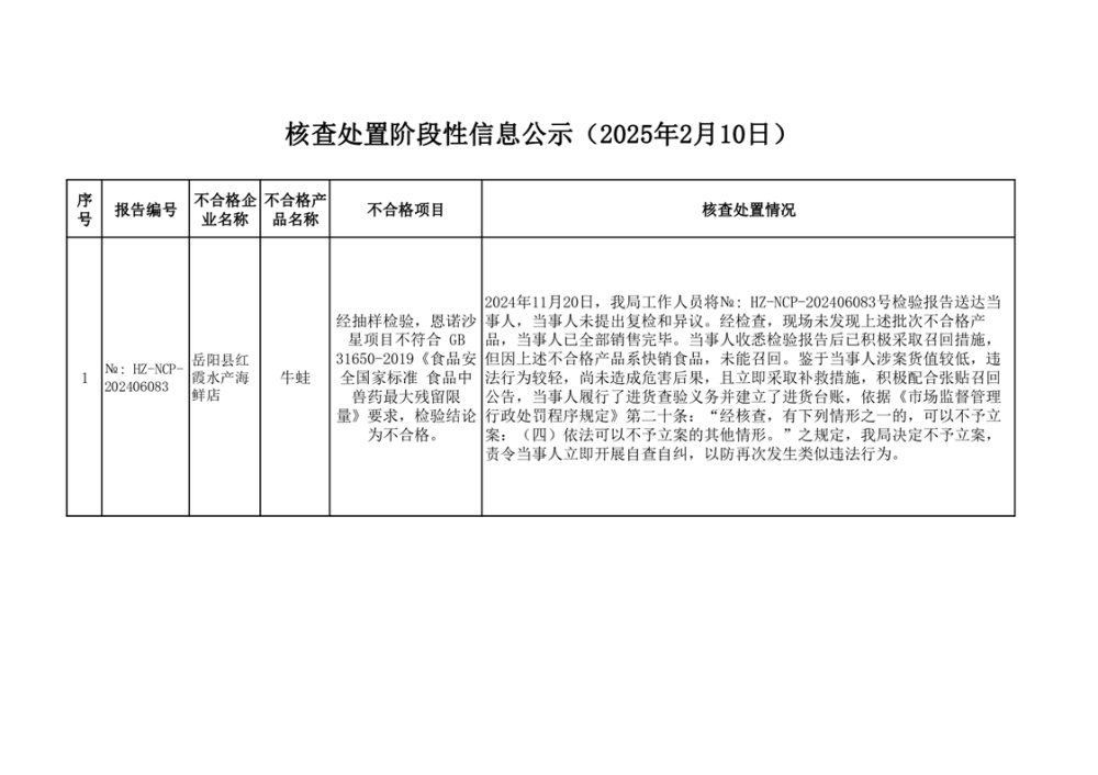 核查处置阶段性信息公示(2025年2月10日)