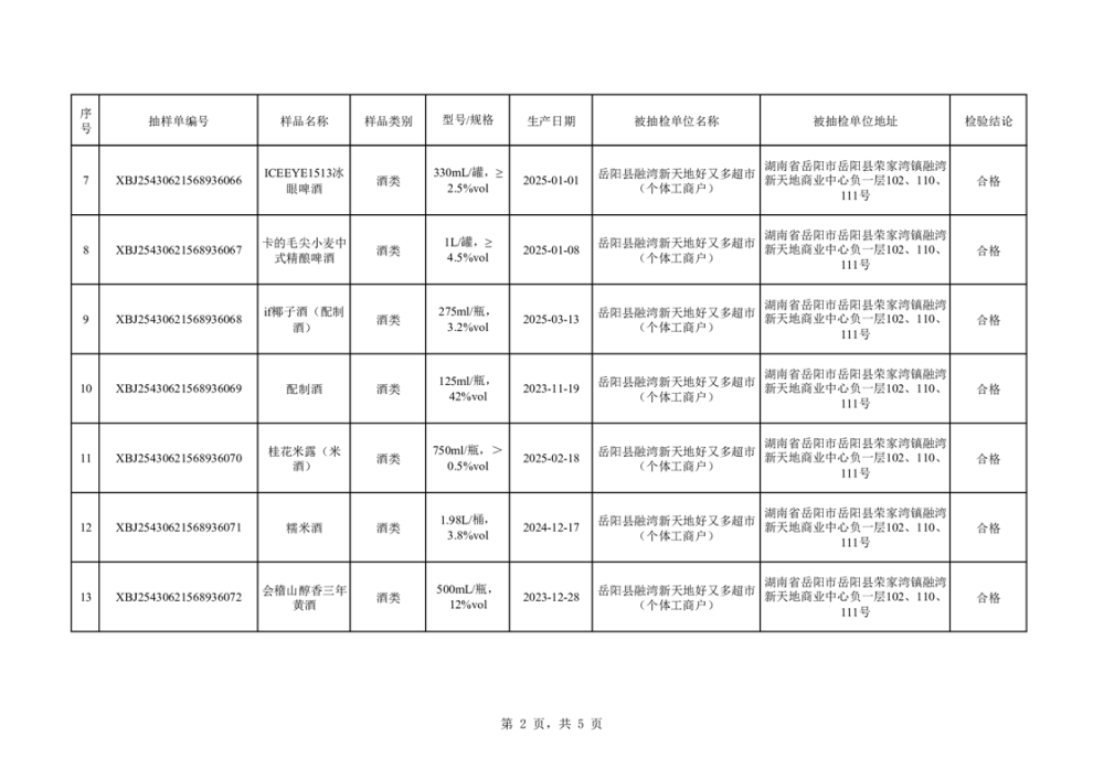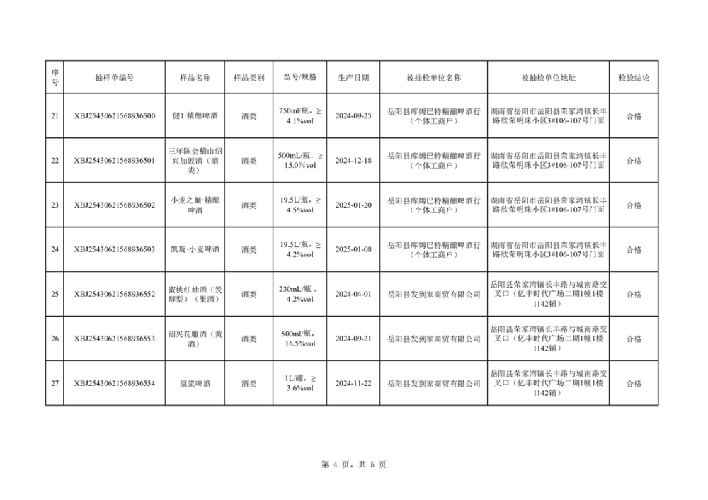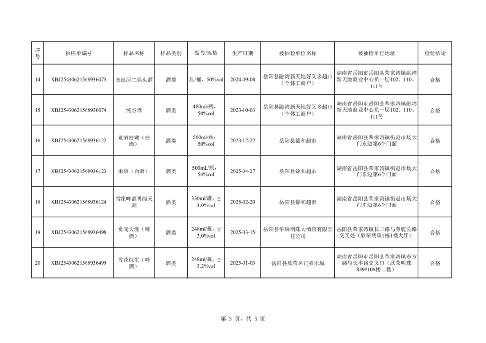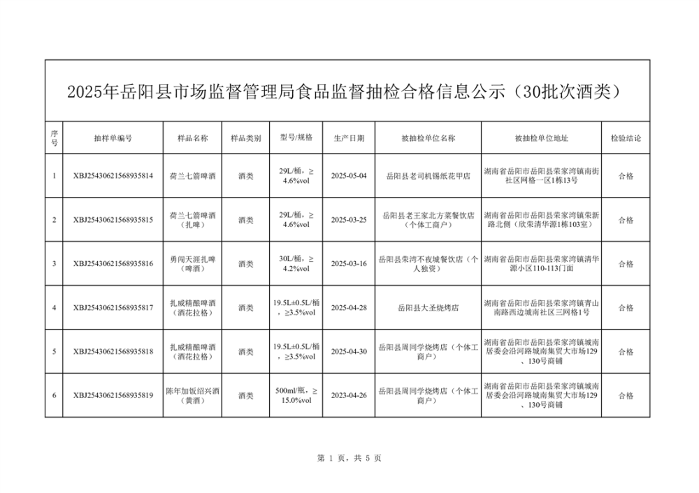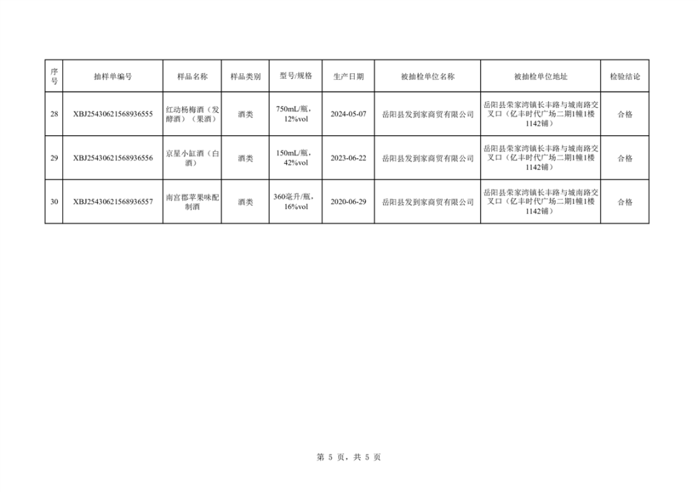 2025年7月8日酒类抽检数据公示(合格30批次)