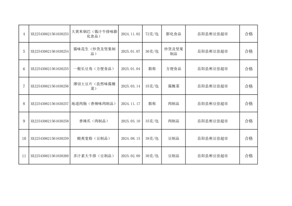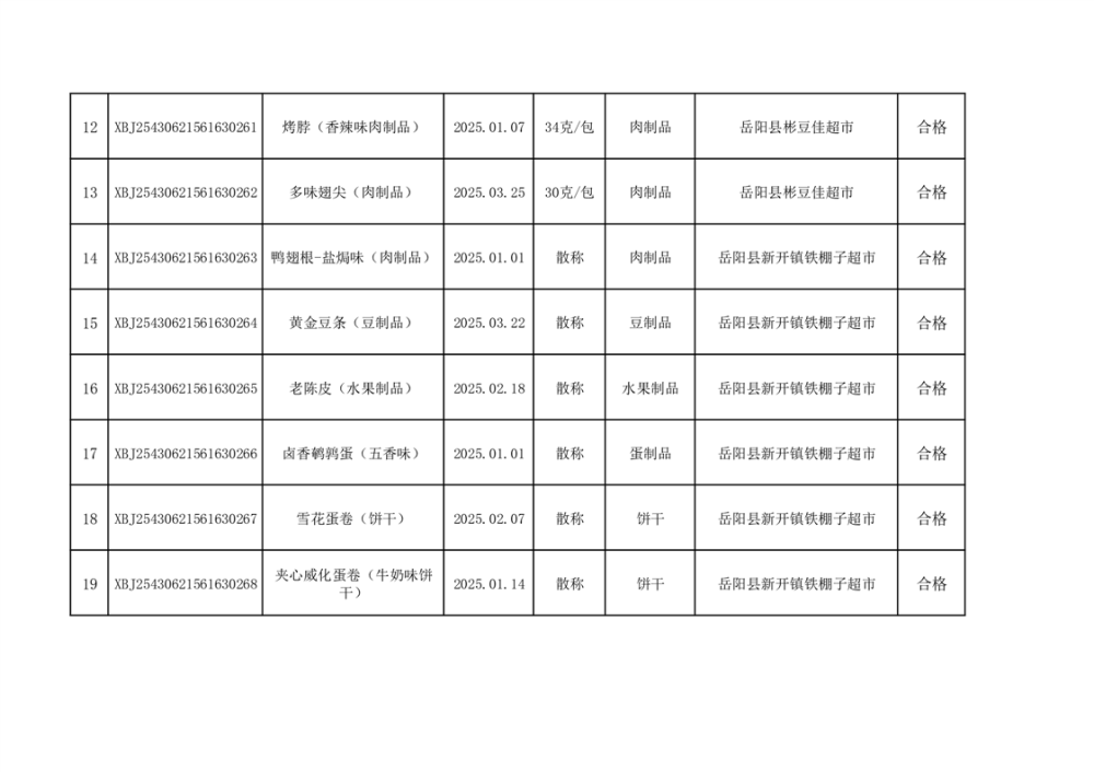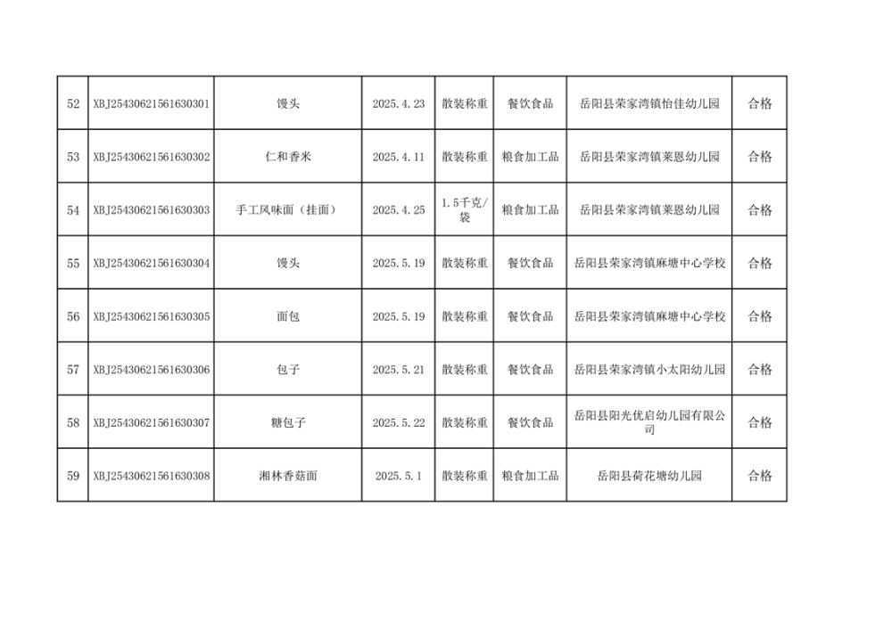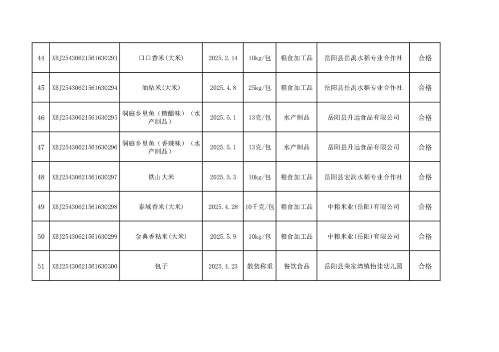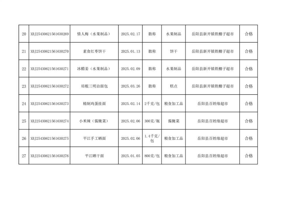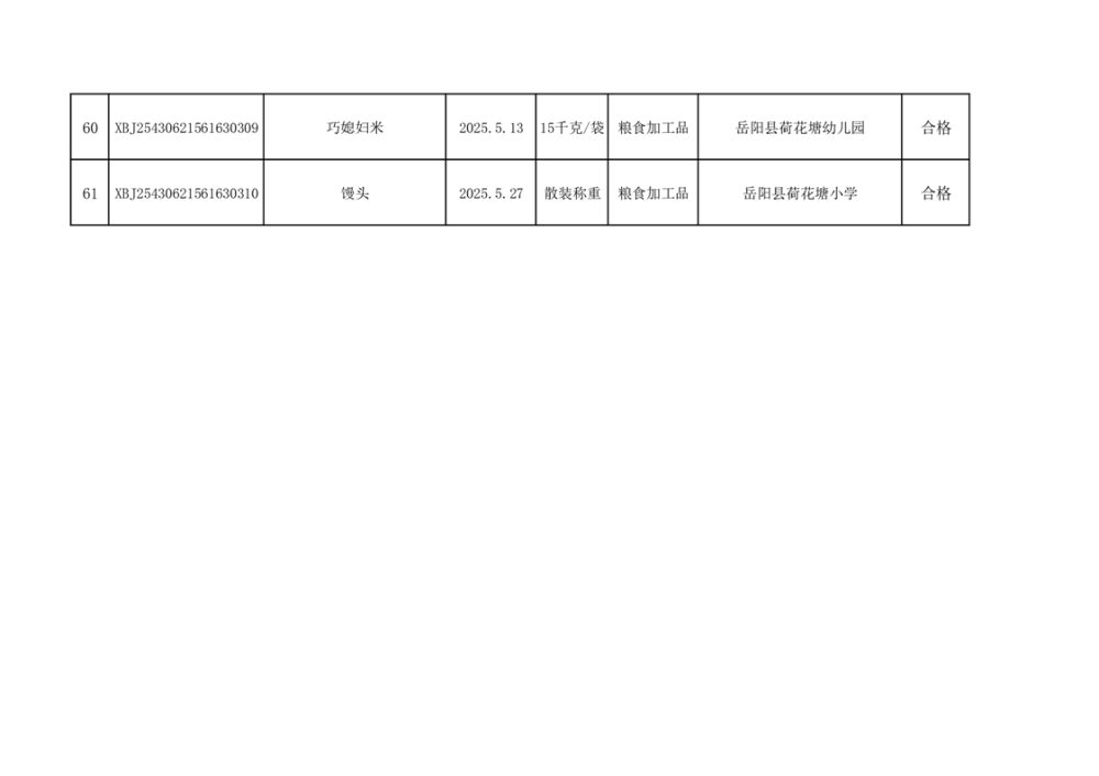 2025年6月27日检测中心抽检数据公示(合格61批次)
