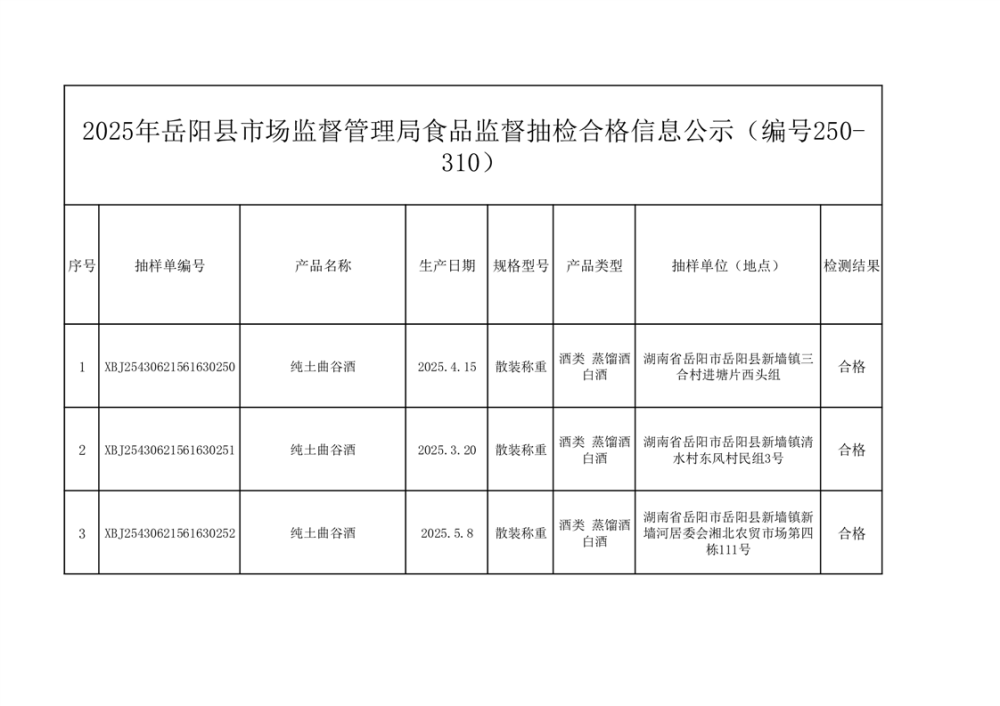 | 公开主体 | 岳阳县市场监督管理局 | ||