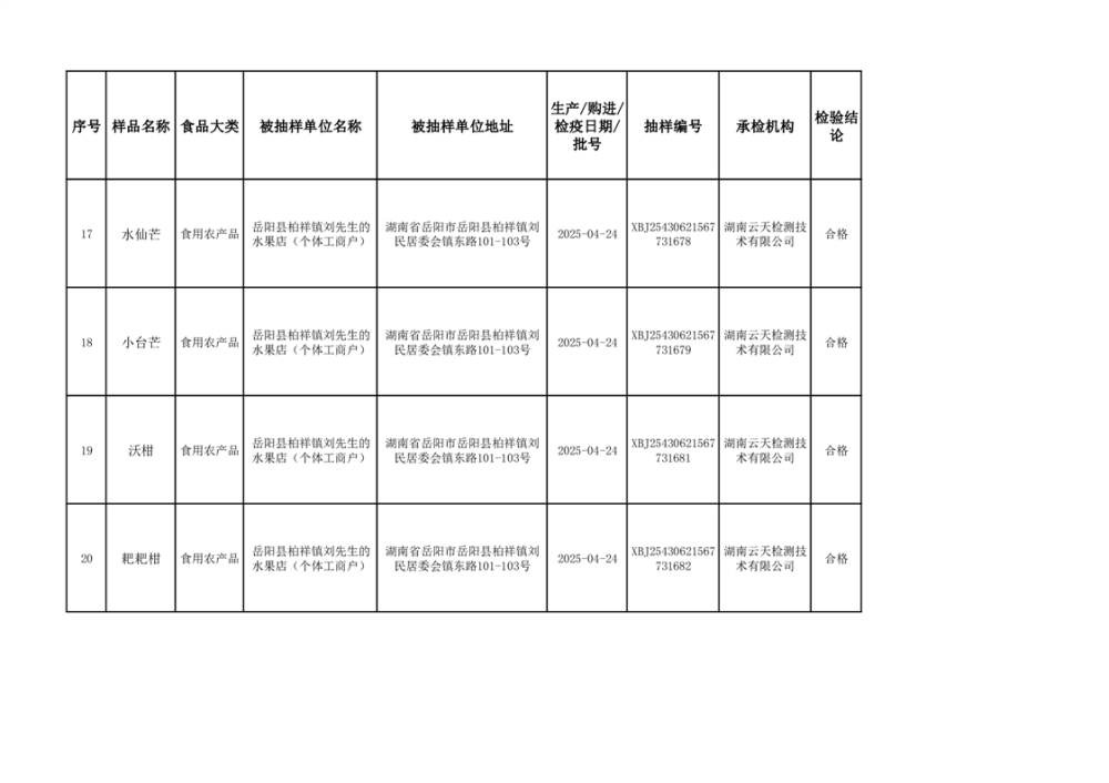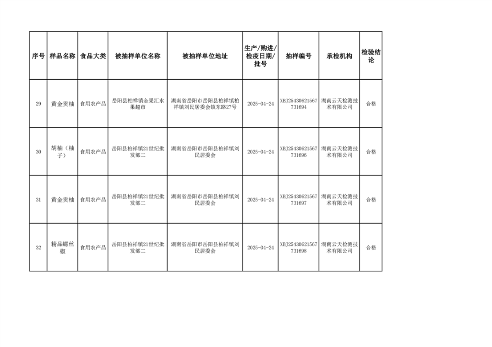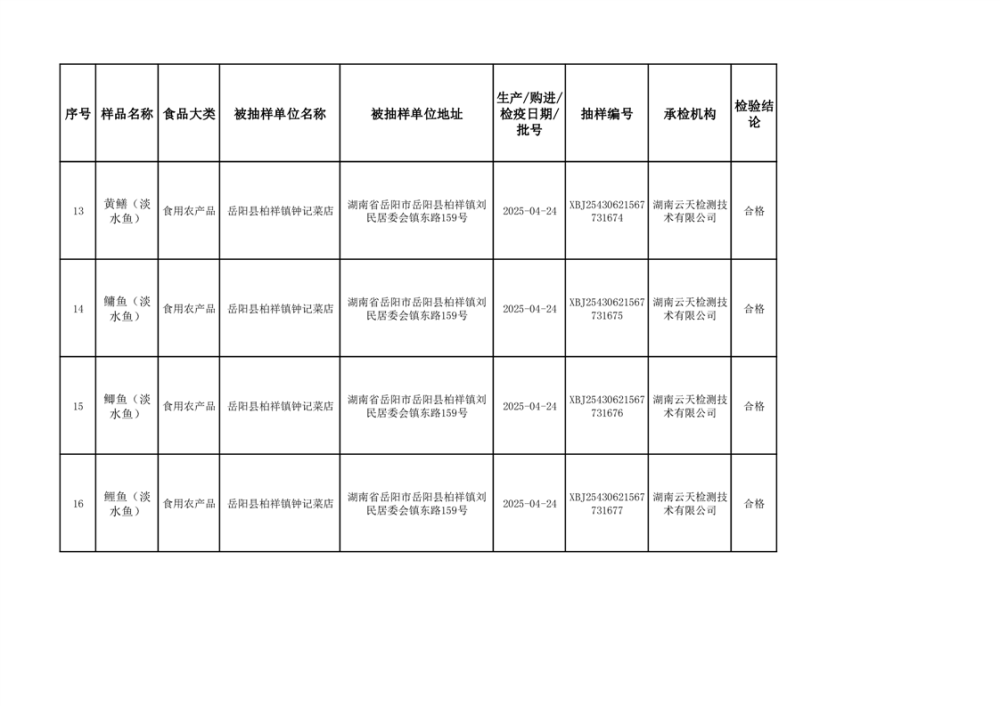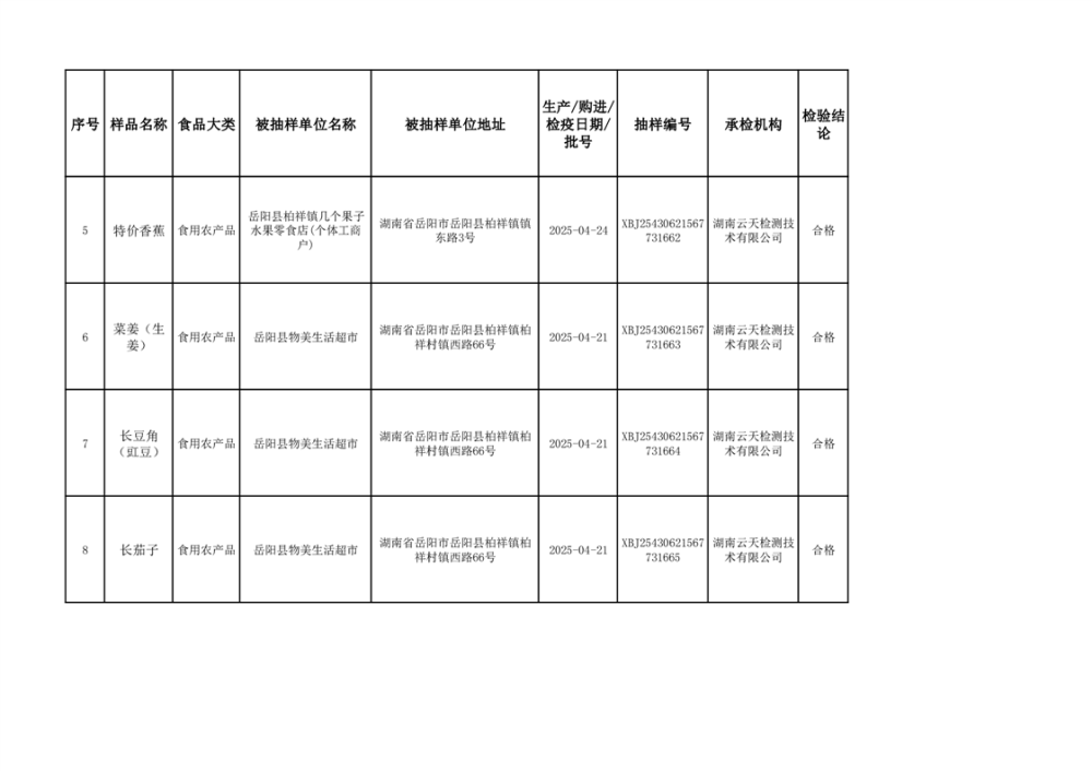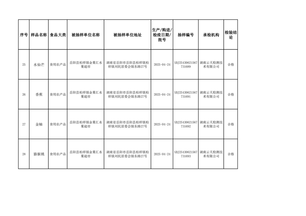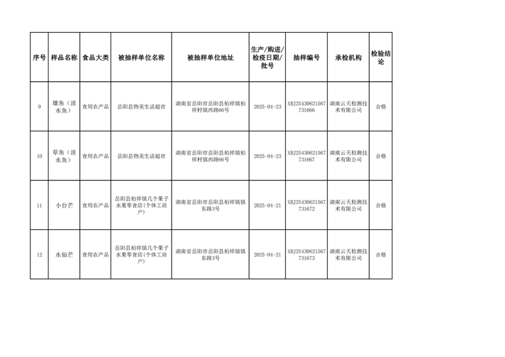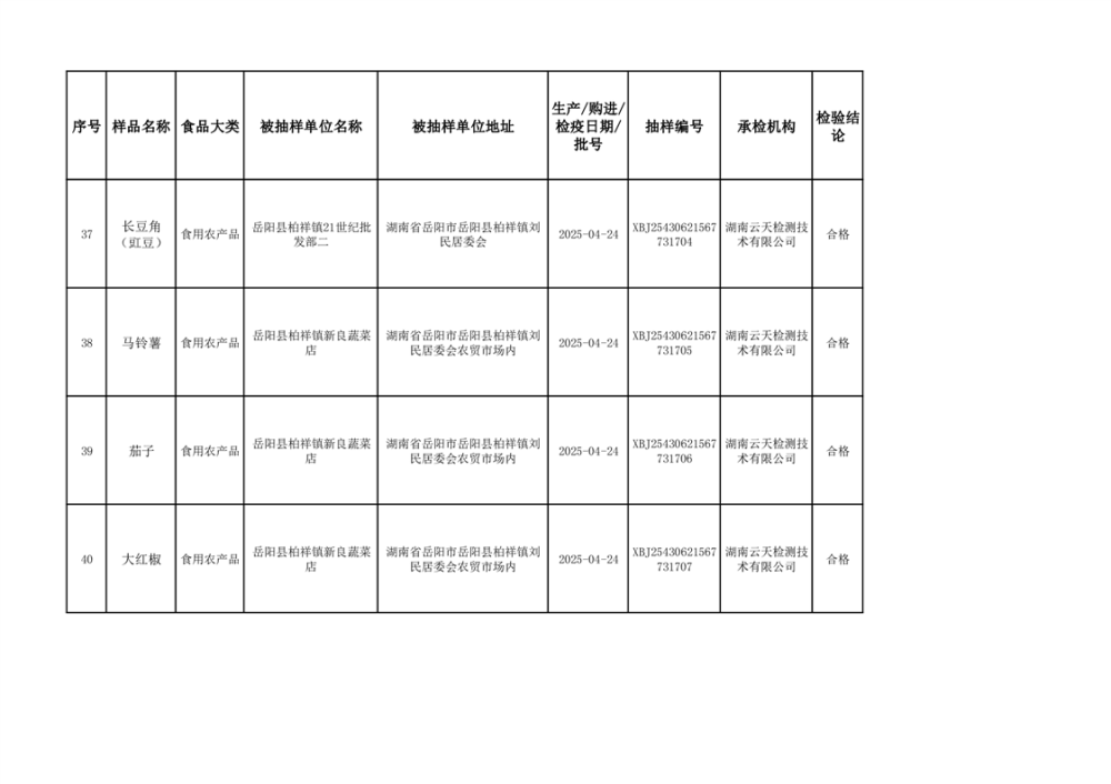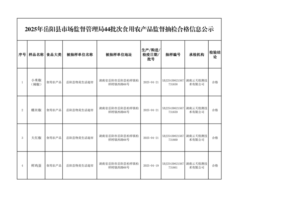 2025年6月10日抽检数据公示(合格44批次)
