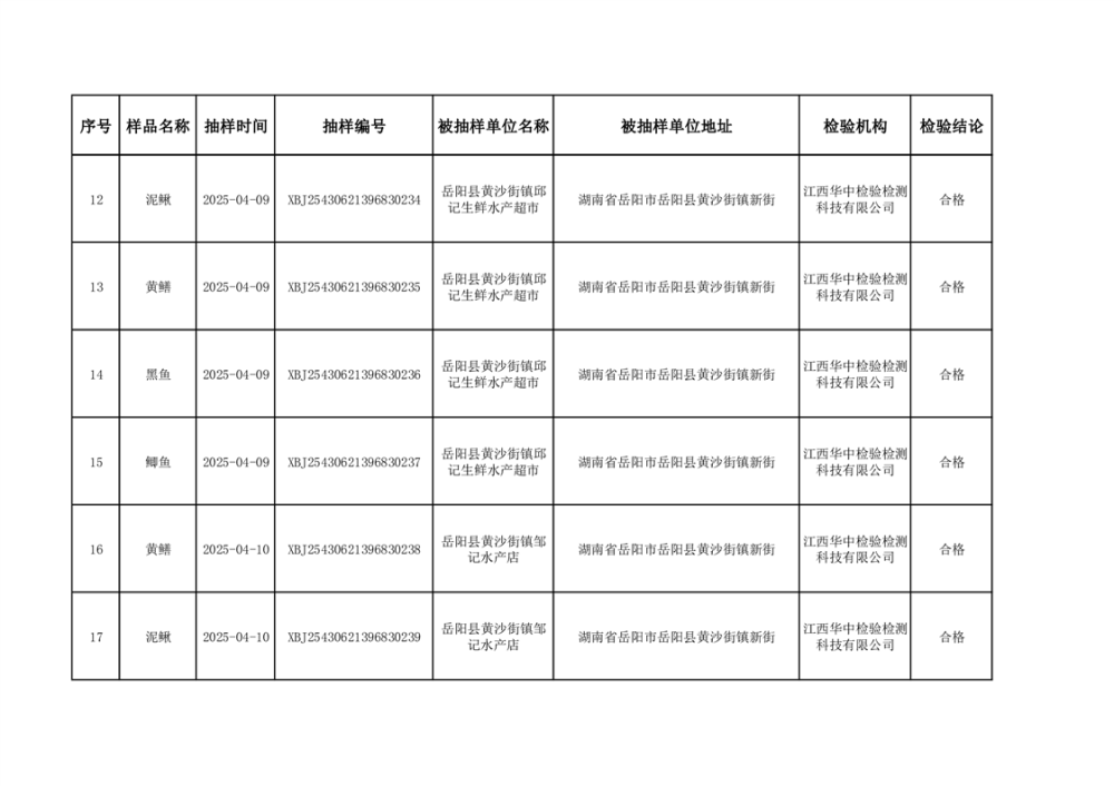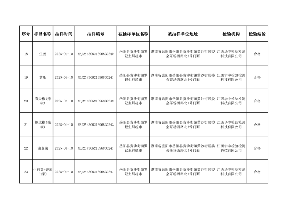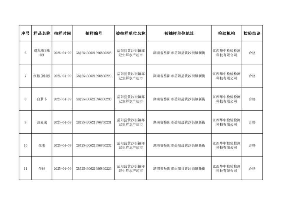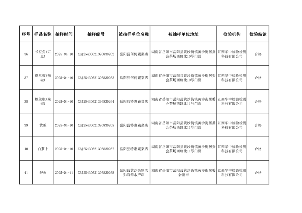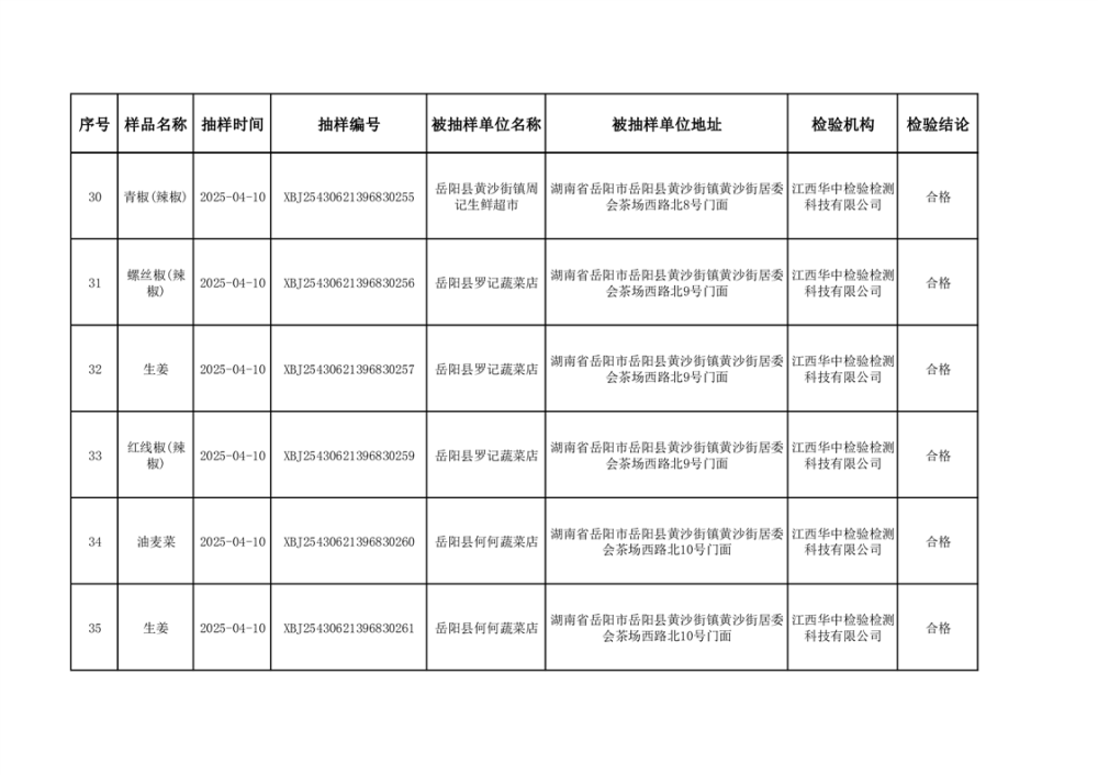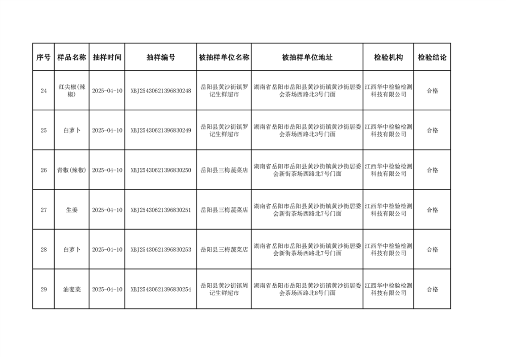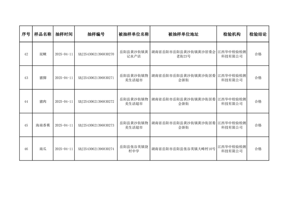 2025年5月27日抽检数据公示(合格46批次)