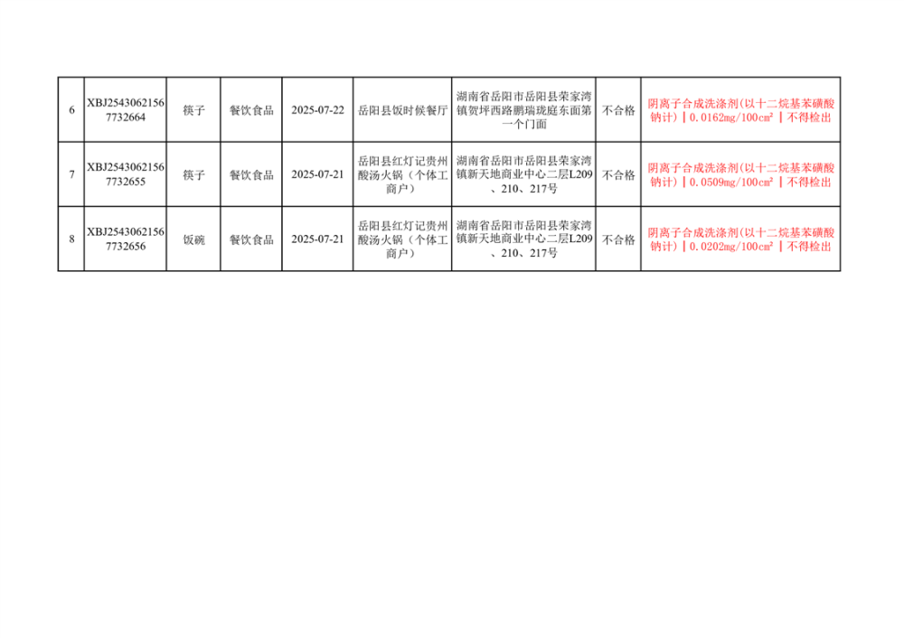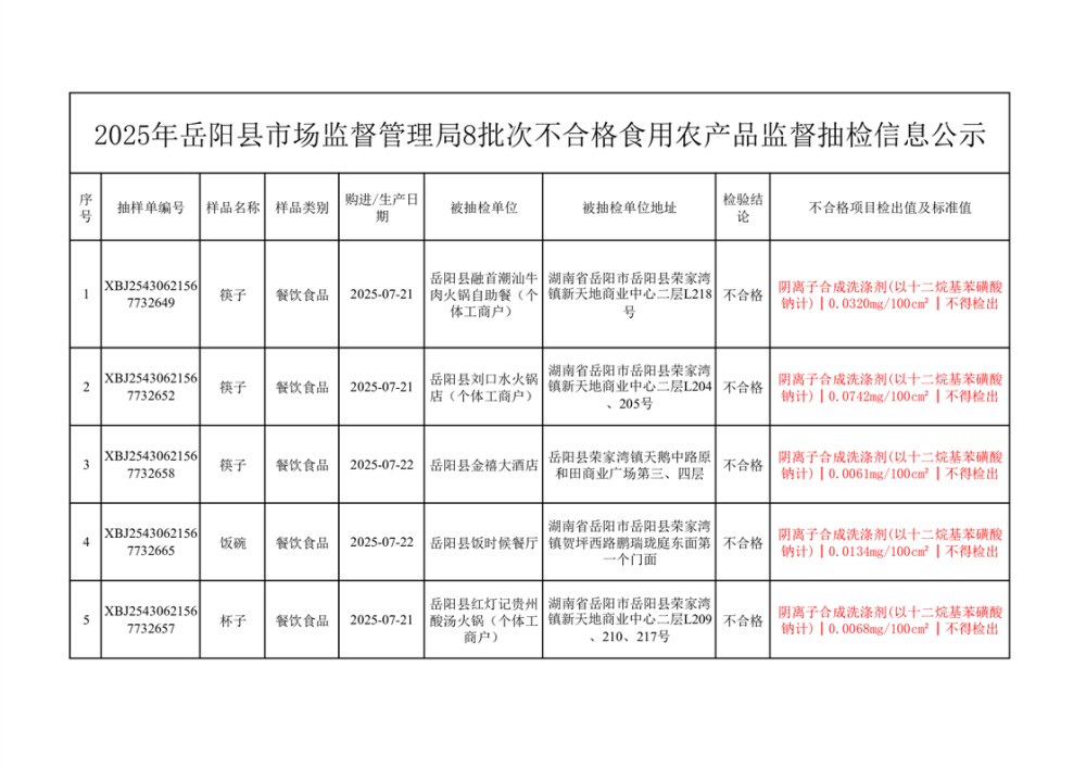 2025年10月14日抽检数据公示(不合格8批次)