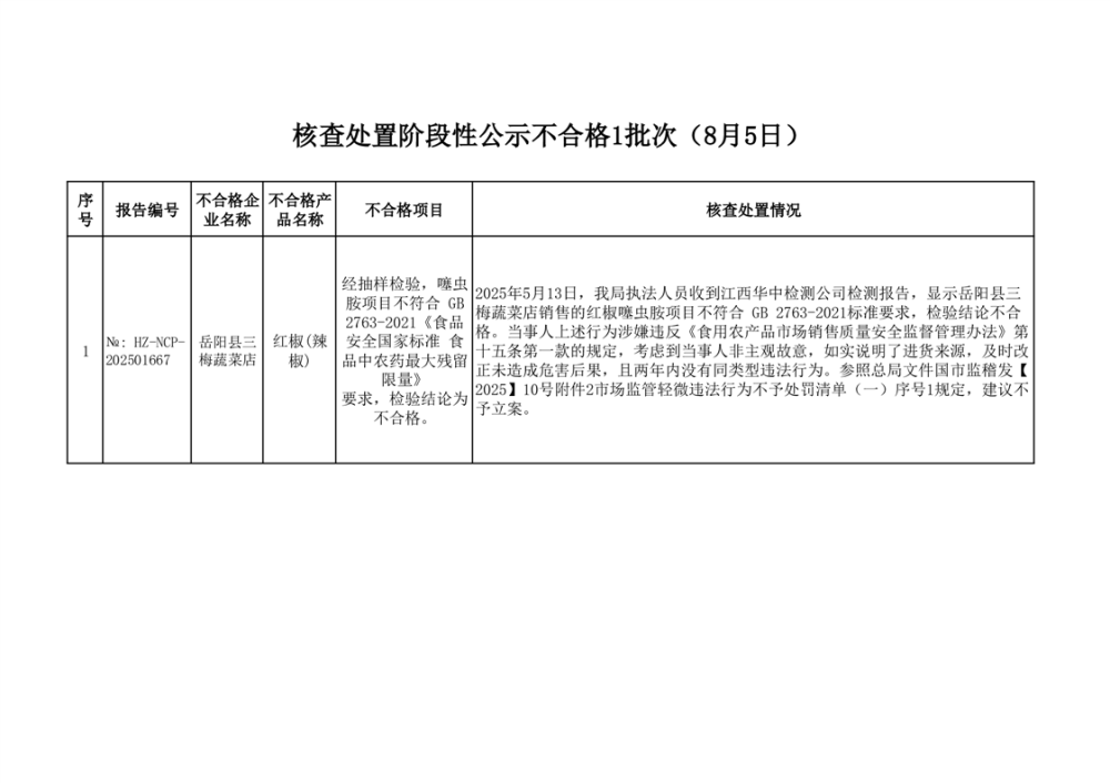 核查处置阶段性信息公示(2025年8月5日)