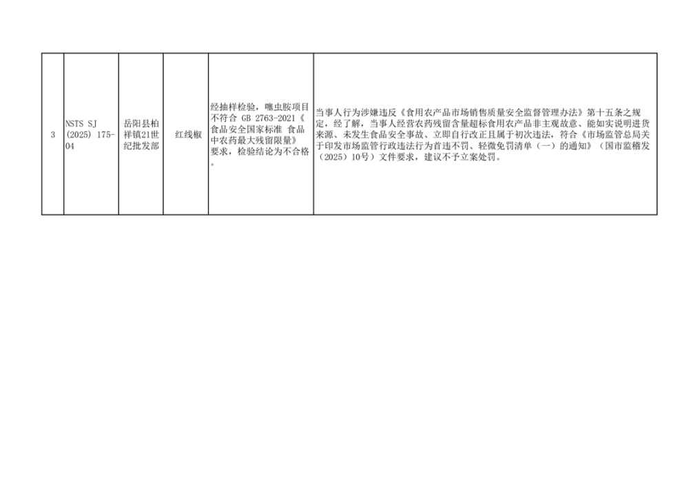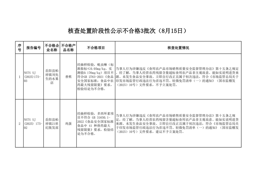 核查处置阶段性信息公示不合格3批次(2025年8月15日)