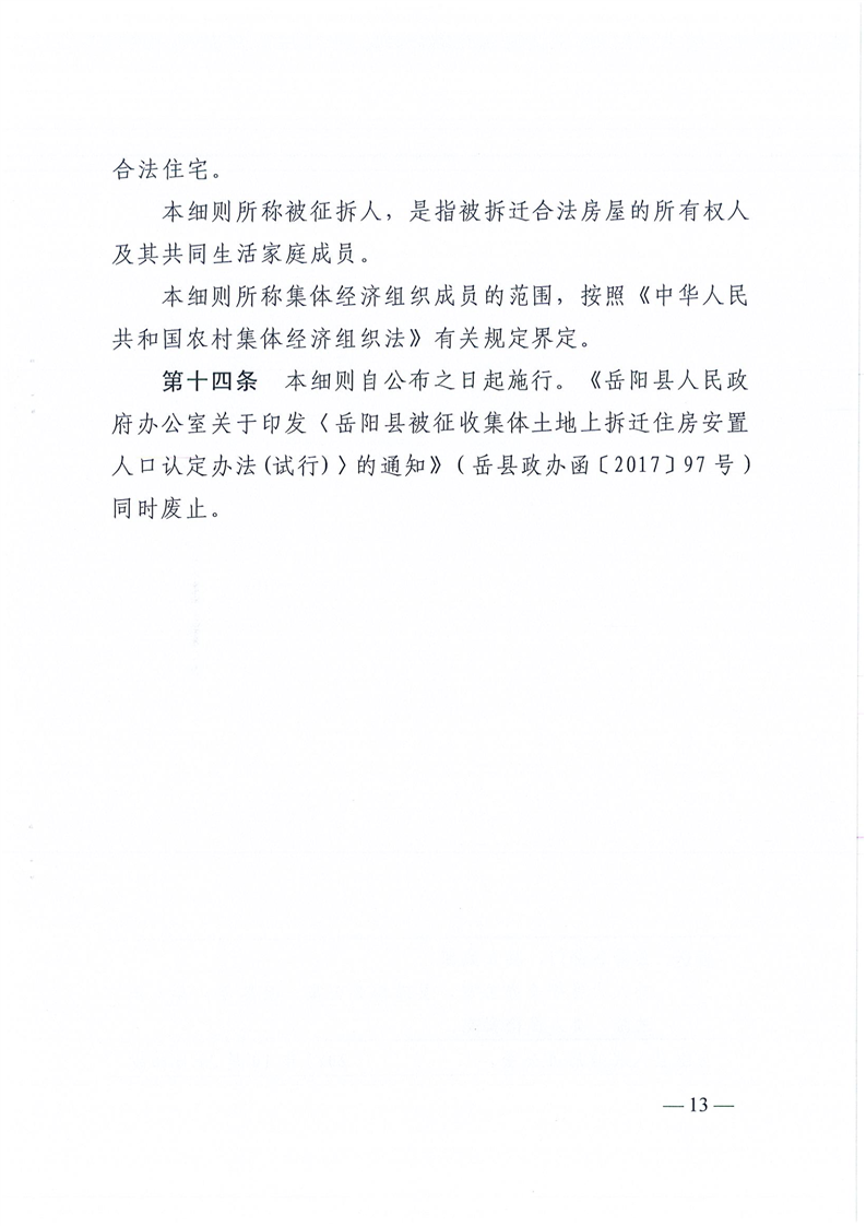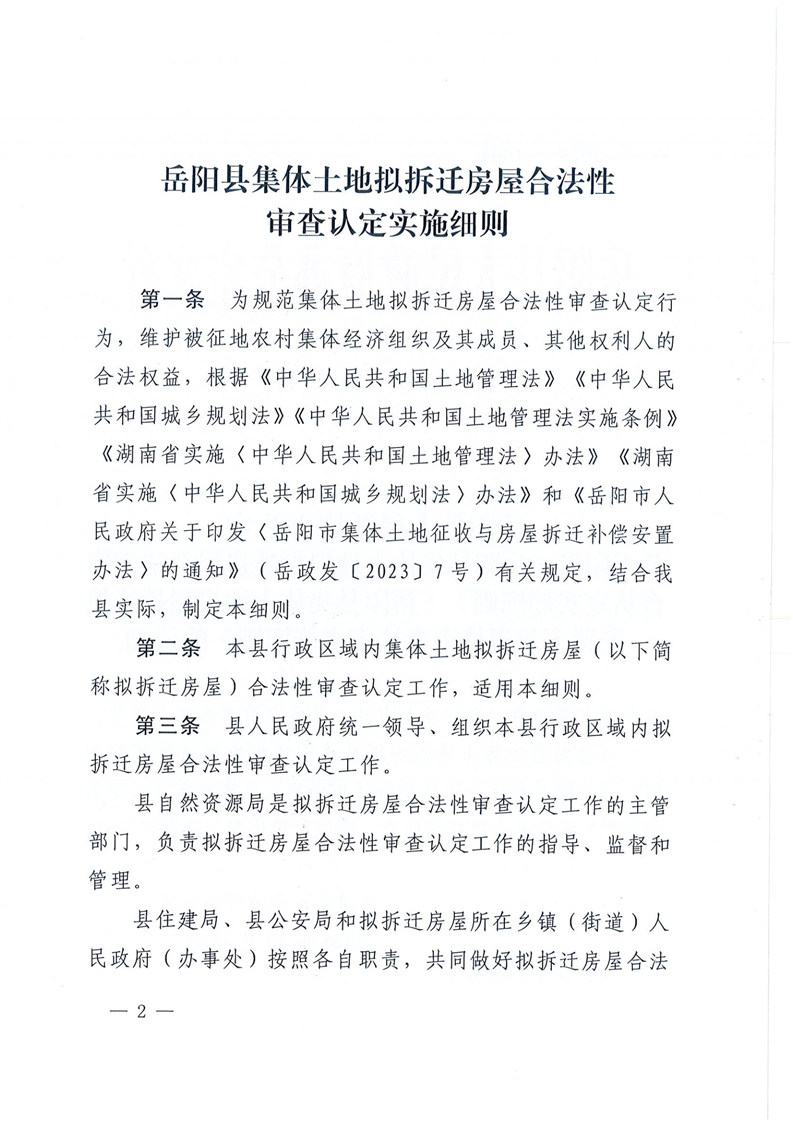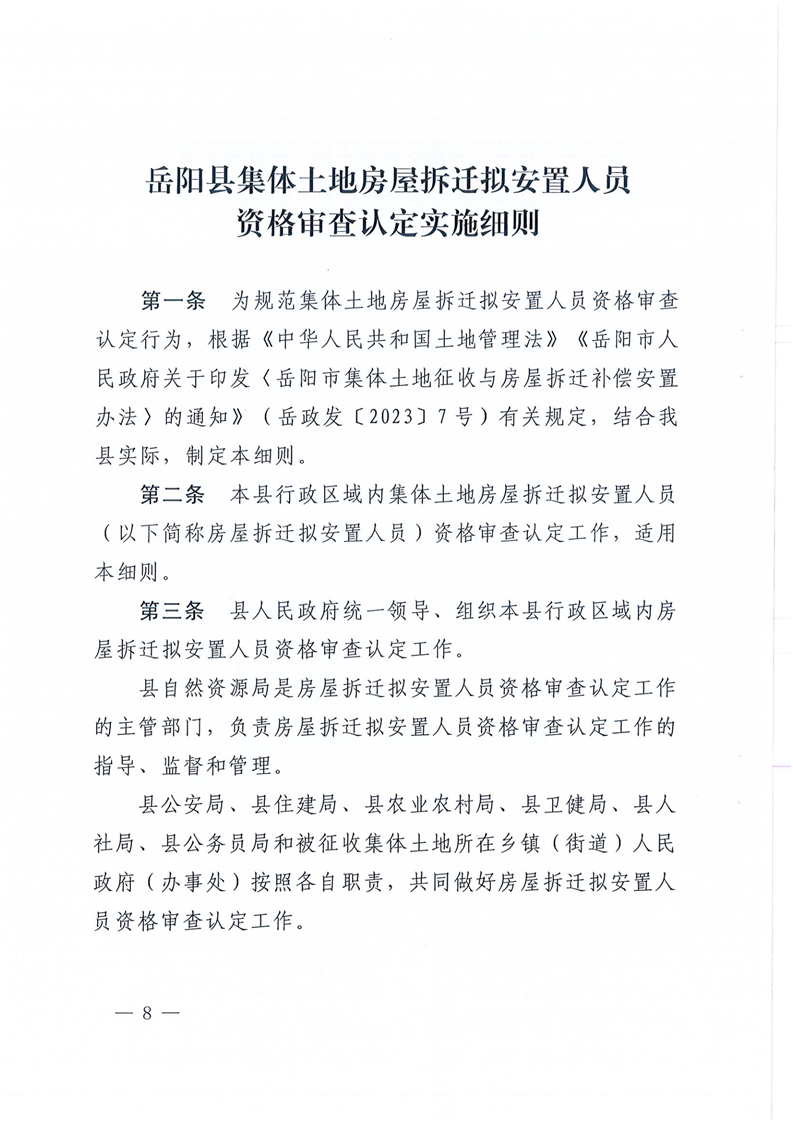 岳县政办发【2025】8号 关于印发《岳阳县集体土地拟拆迁房屋合法性审查认定实施细则》《岳阳县集体土地房屋拆迁拟安置人员资格审查认定实施细则》的通知