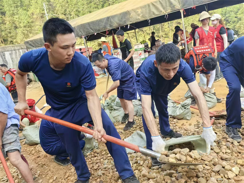 四、树牢宗旨意识,竭诚服务人民 始终把“对党忠诚、纪律严明、赴汤蹈火、竭诚为民”作为建队宗旨,时刻准备着战斗。自队伍组建以来,参与扑救森林山火、防汛救灾等60余场次,挽回经济损失3000余万元。2023年1月28日傍晚,队员们刚从春运交通岗亭回队,接到紧急指令,又迅速奔赴月田镇,在火场连续奋战20小时。今年入汛以来,该队多次执行人员搜救、转移群众、应急排涝、舟桥架设等紧急任务,并转战平江、华容君山等县区,搜救并转移群众300余人。7月1日19时,接上级紧急指令,该队出动3车4艇19人,赶赴平江县伍市镇、浯口镇张市村执行紧急救援任务,队员们克服夜晚倾盆大雨、救援场地停电的恶劣环境,共搜救并安全转移群众39人。 |