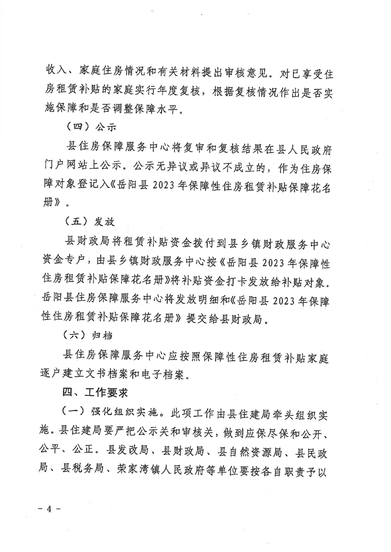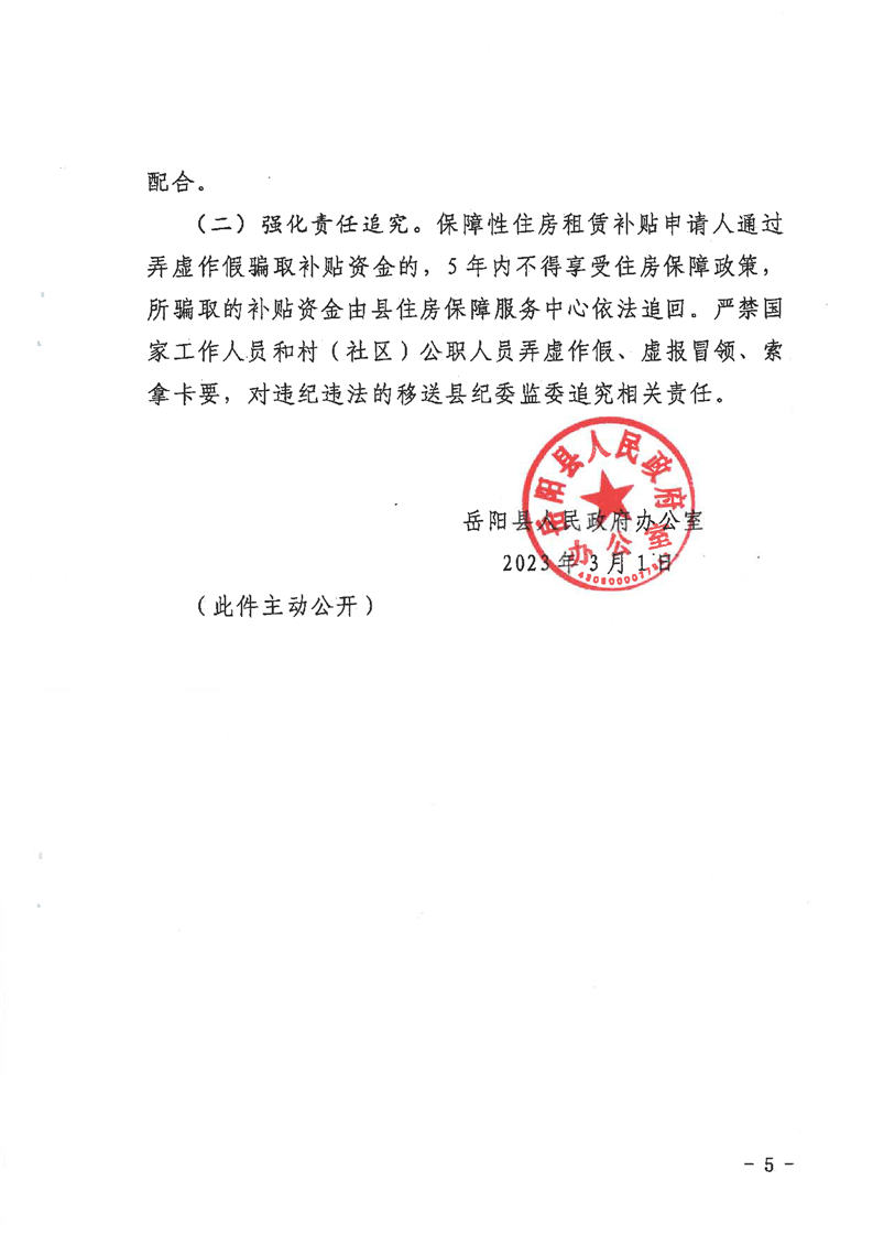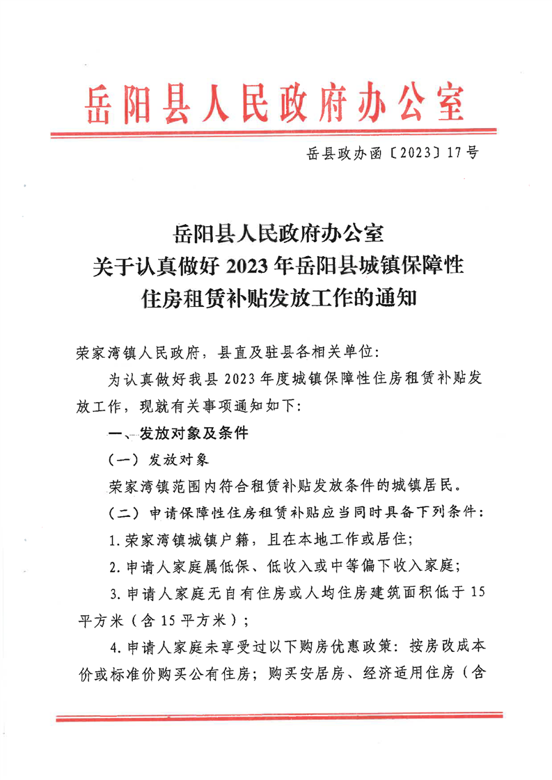 岳县政办函(2023)17号岳阳县人民政府办公室关于认真做好2023年岳阳县城镇保障性住房租赁补贴发放工作的通知