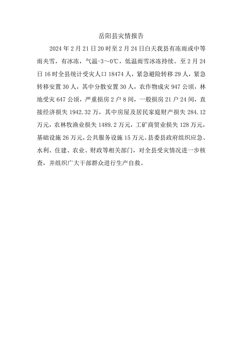 2月22日岳阳县灾情报告