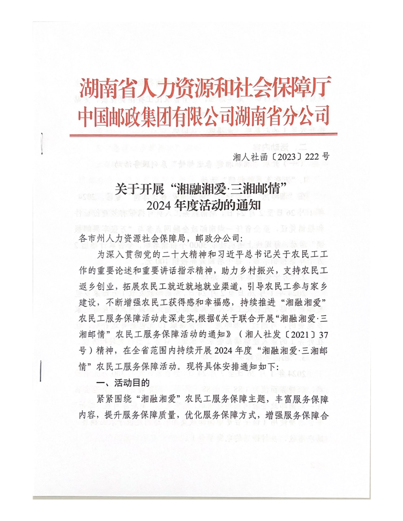 关于开展“湘融湘爱·三湘邮情”2024年度活动的通知