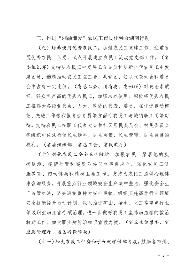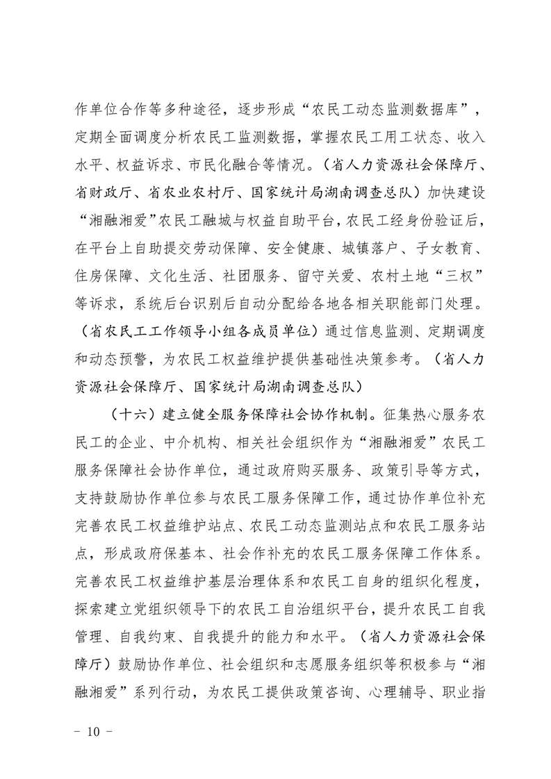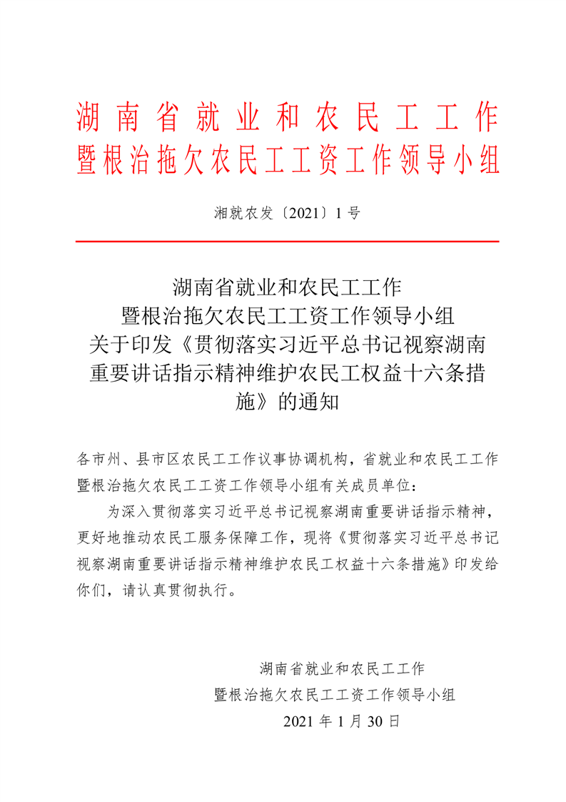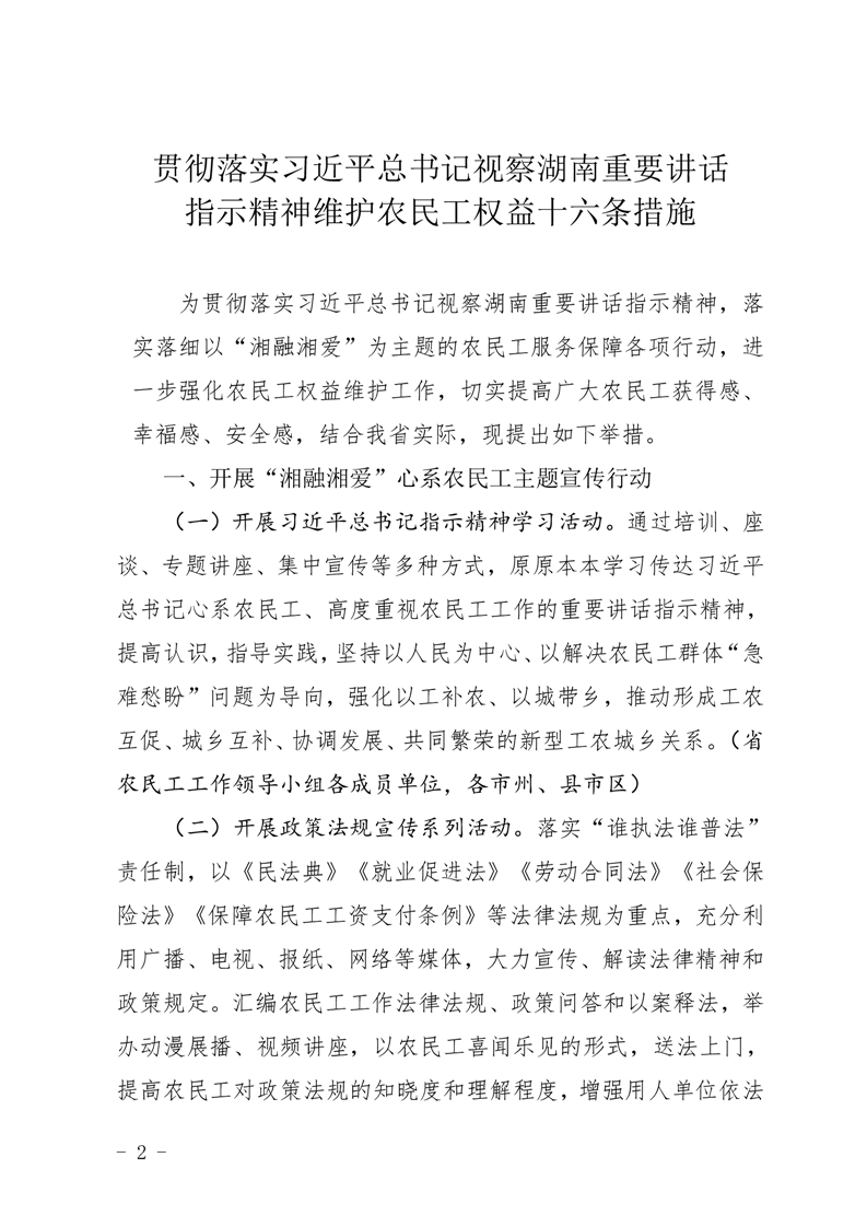贯彻落实习近平总书记视察湖南重要讲话 指示精神维护农民工权益十六条措施