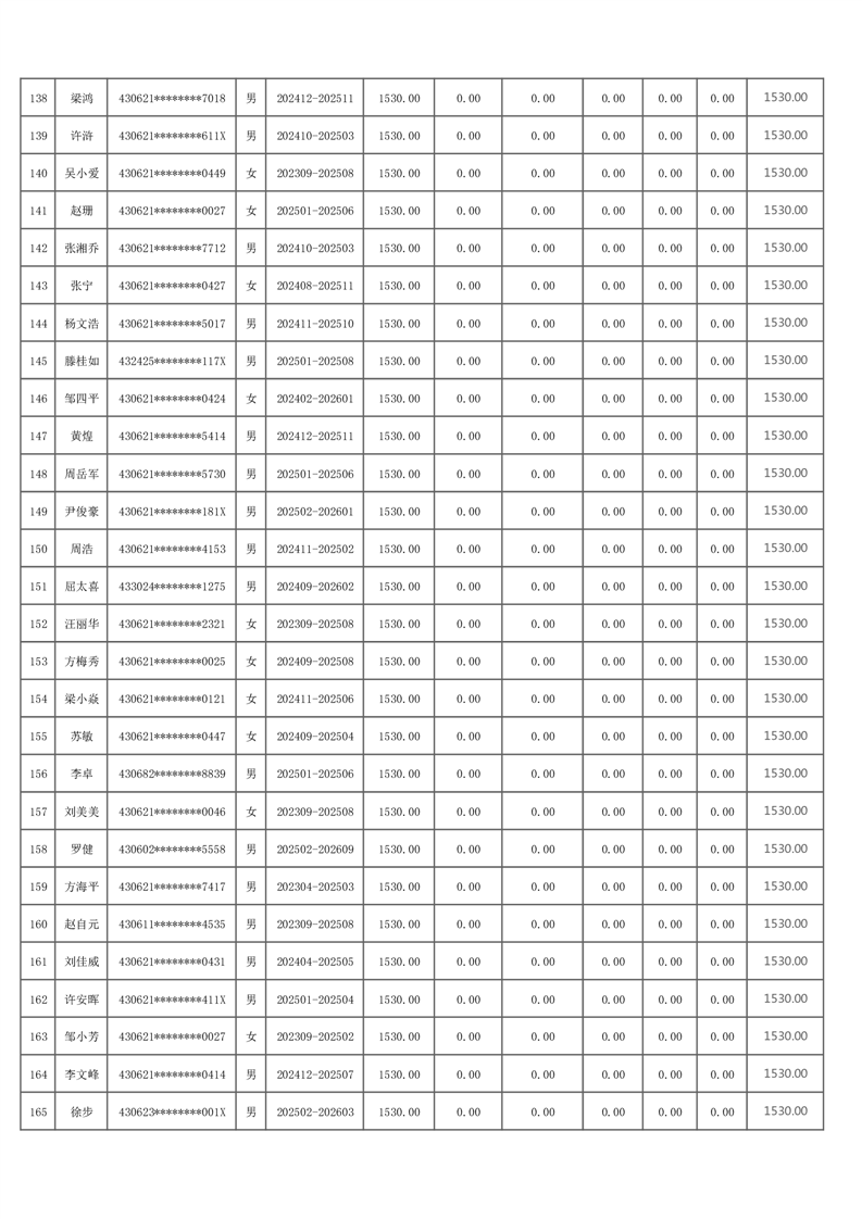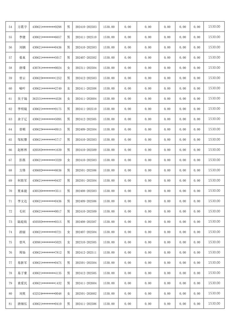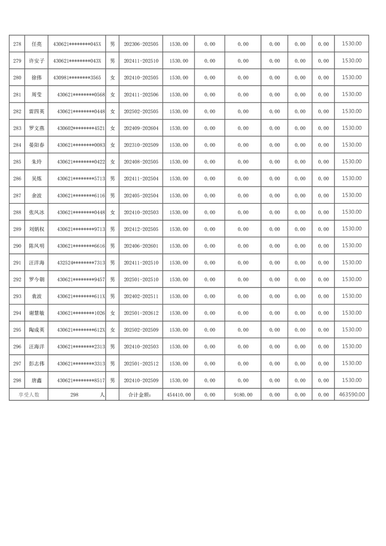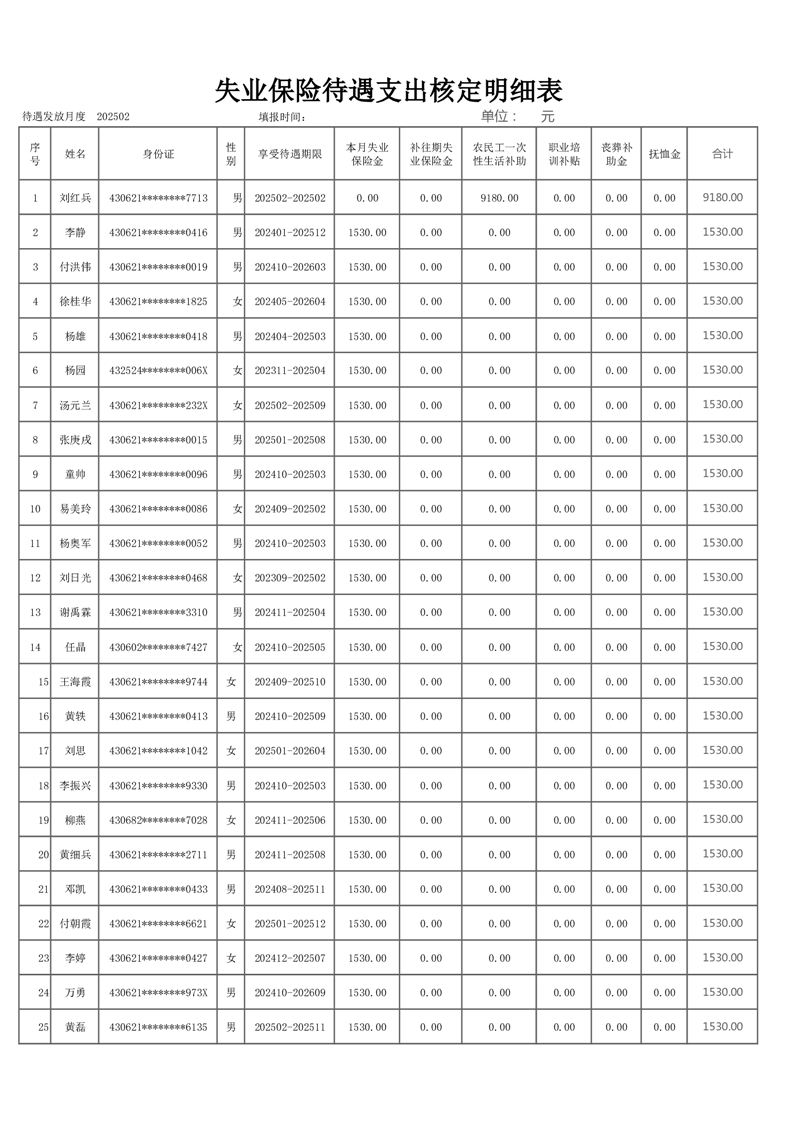 岳阳县2025年2月失业保险待遇支出核定明细表