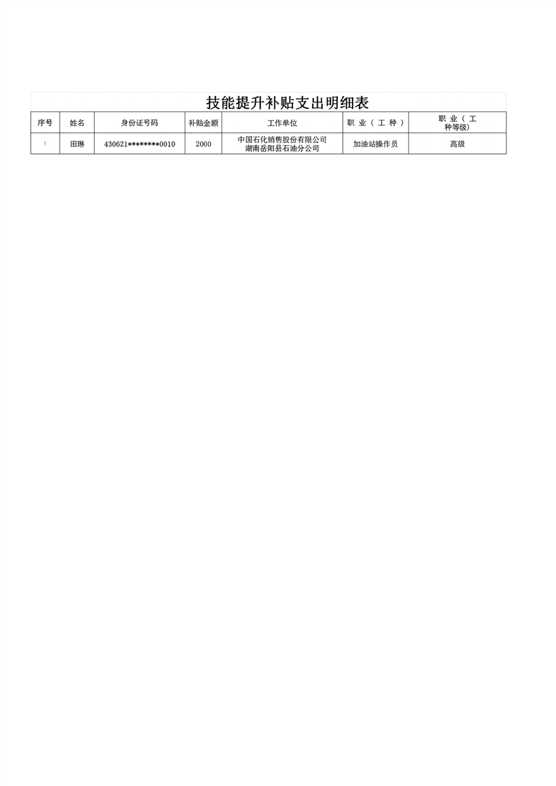 2025年6月技能提升补贴支出明细表