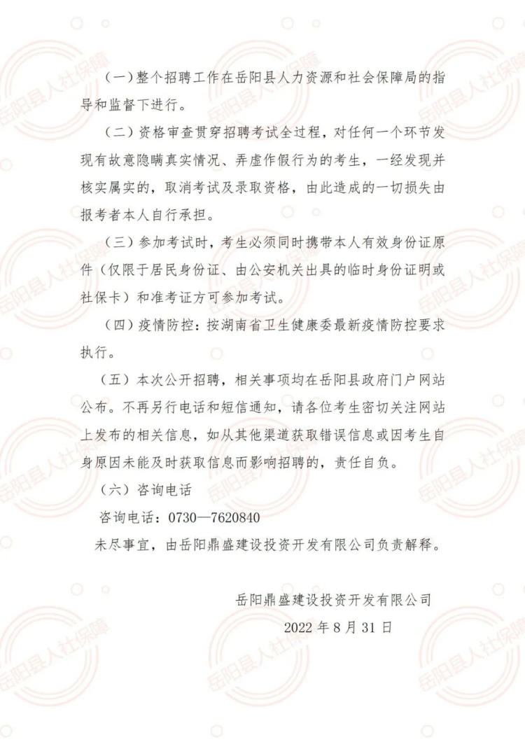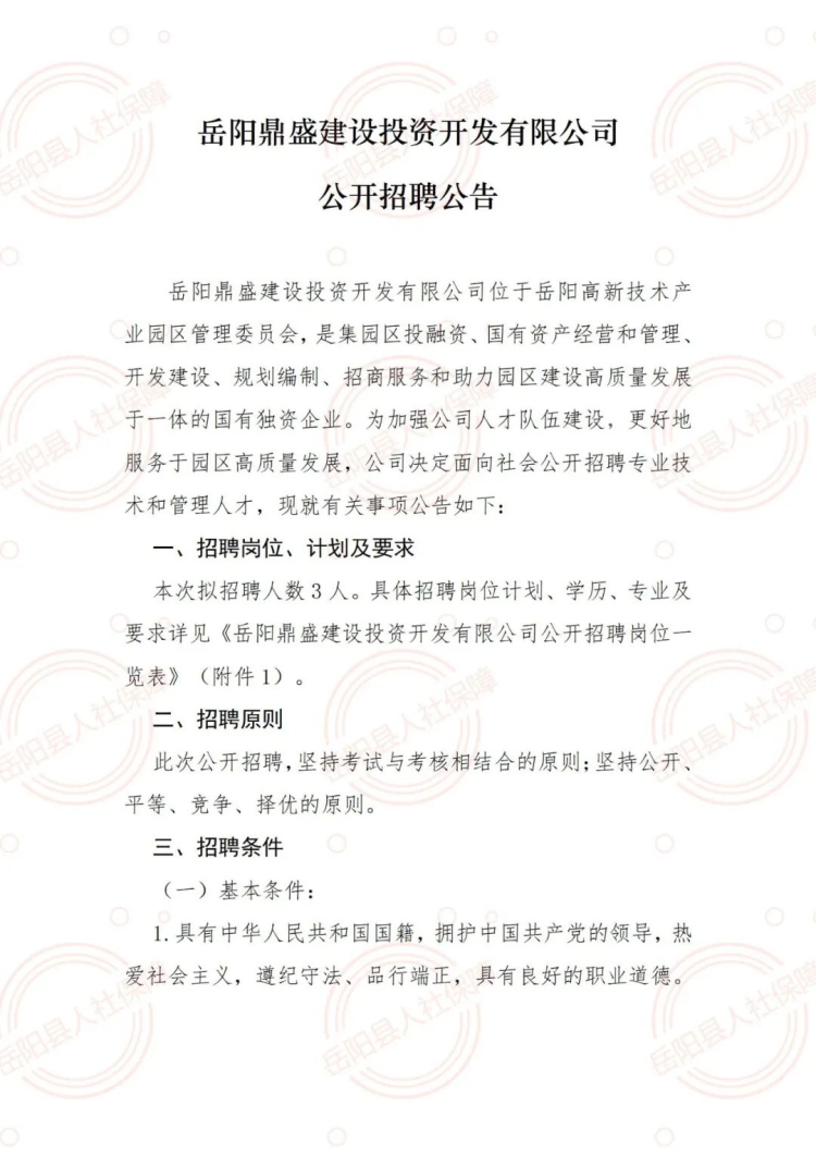 岳阳鼎盛建设投资开发有限公司公开招聘公告