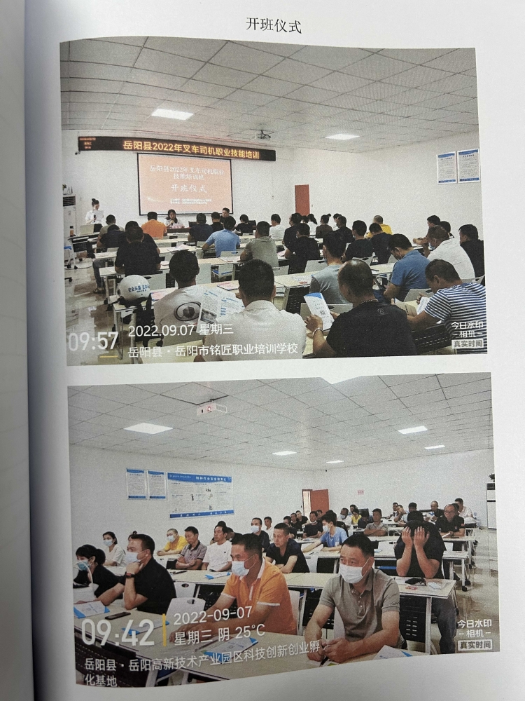 培训机构:岳阳市铭匠职业培训学校 培训职业(工种):叉车司机 培训人数:50人 培训时间:9月7日-9月22日,共15天 培训课时:105课时