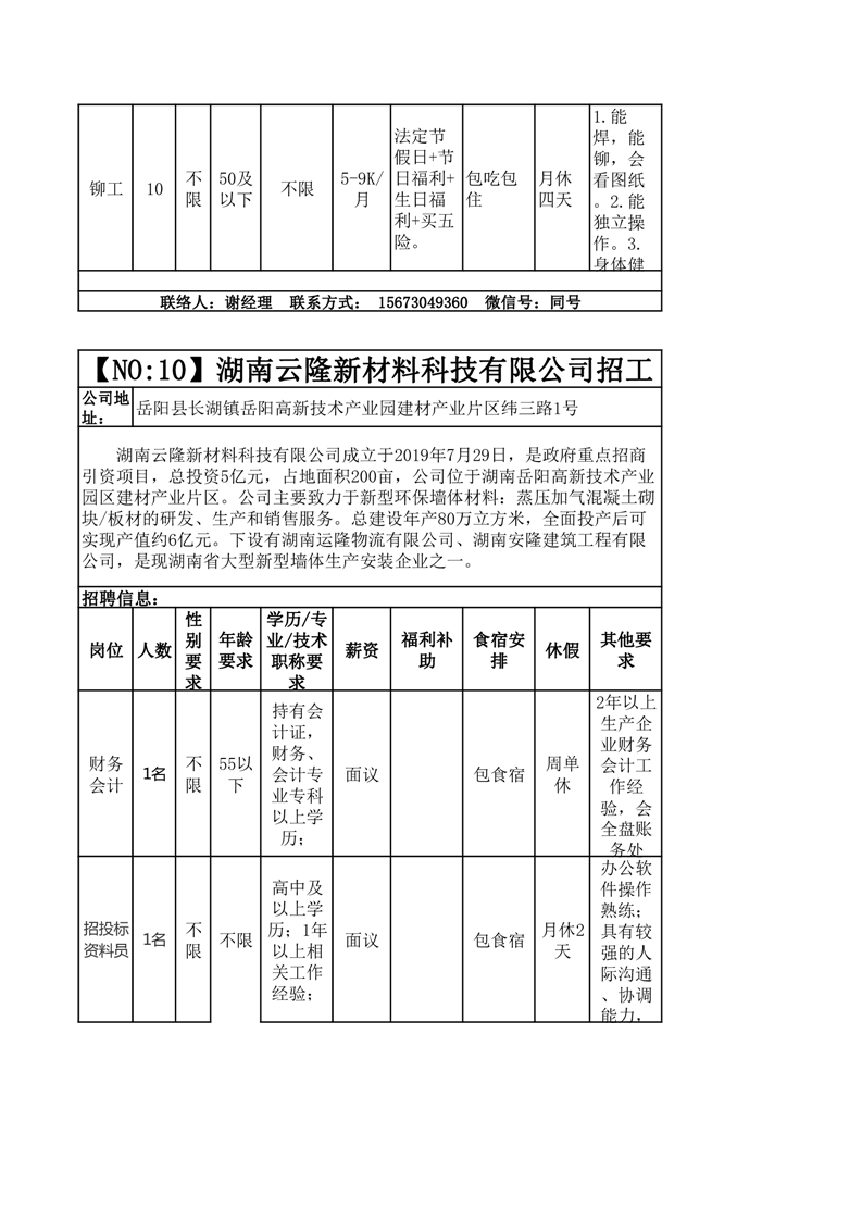 岳阳县招聘信息岗位发布