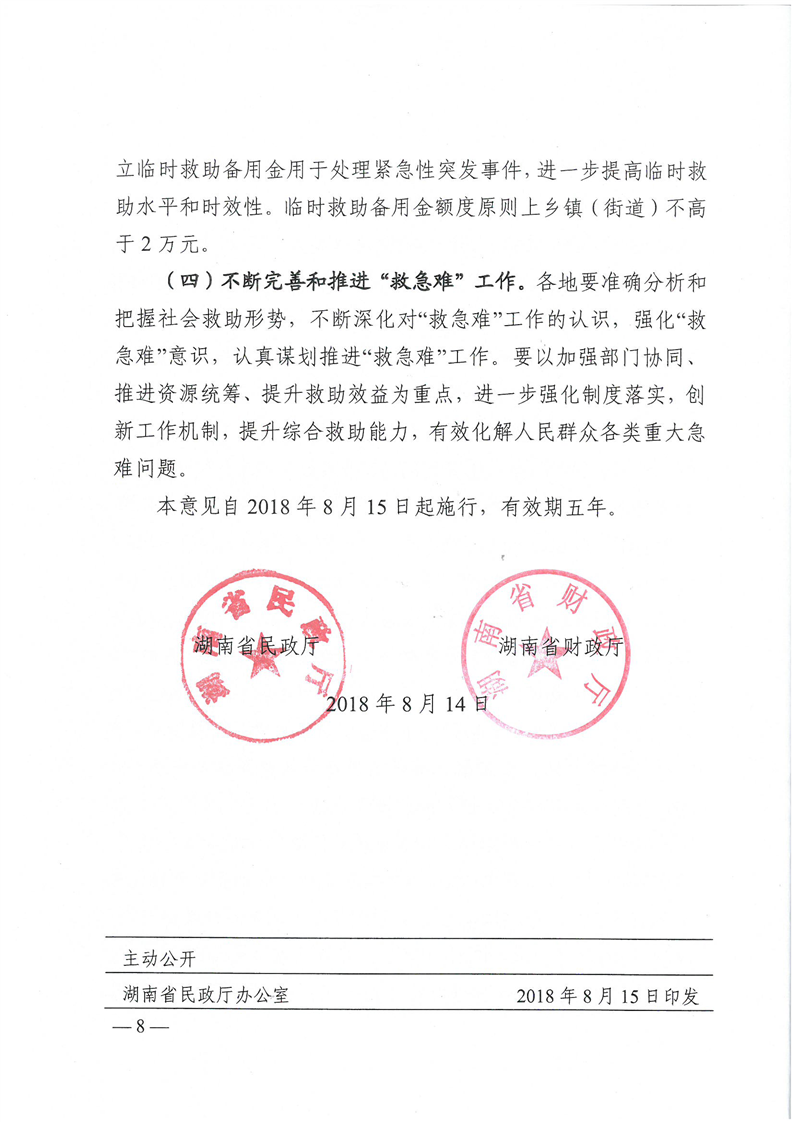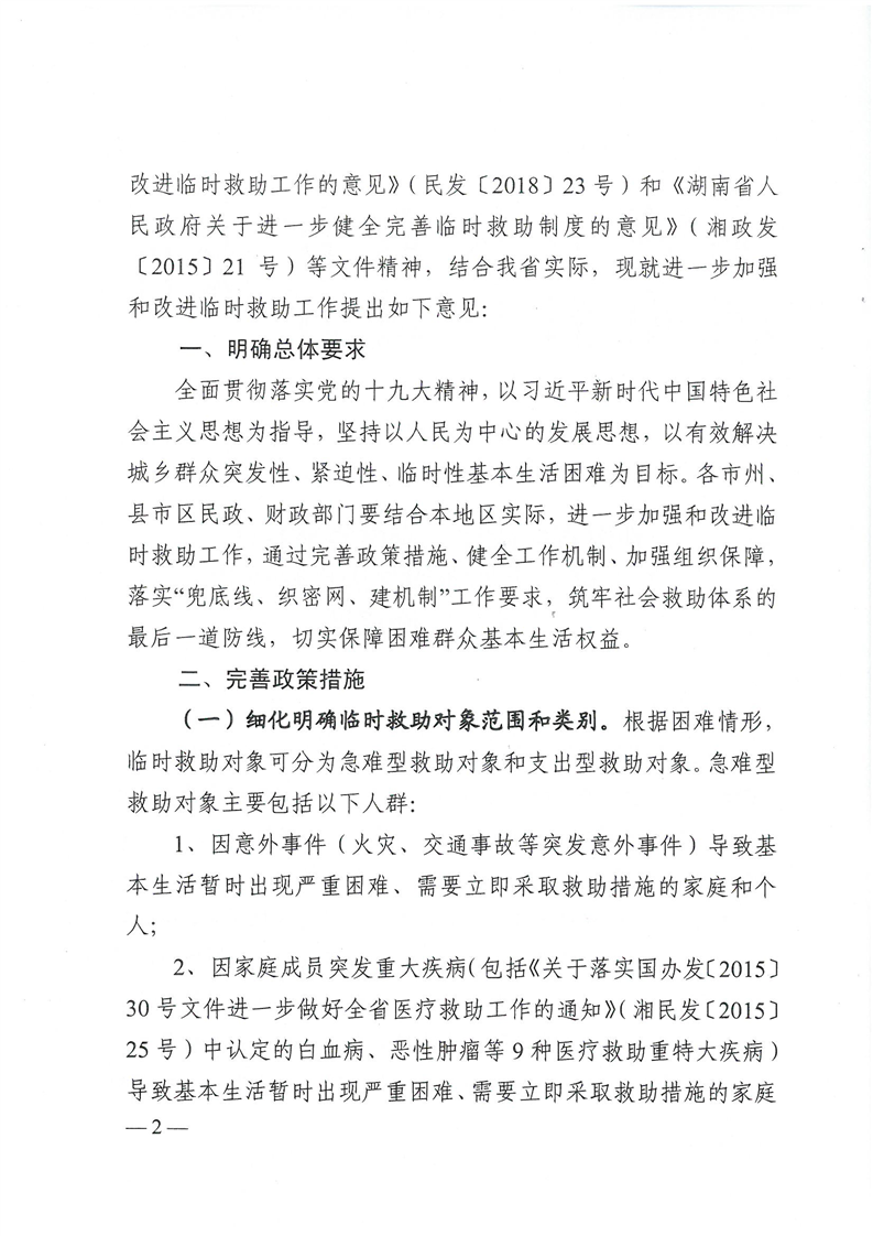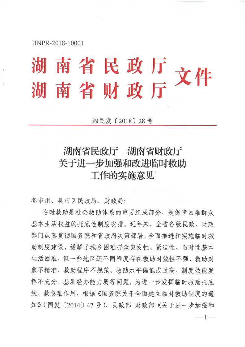 关于进一步加强和改进临时救助工作的实施意见 湘民发[2018] 28号