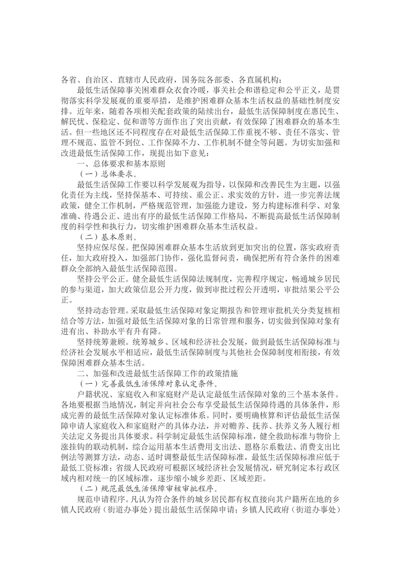 国务院关于进一步加强和改进 最低生活保障工作的意见 国发〔2012〕45 号