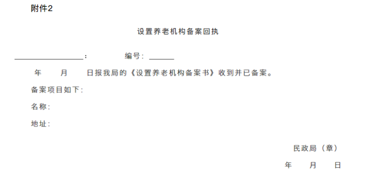 各省、自治区、直辖市民政厅(局),各计划单列市民政局,新疆生产建设兵团民政局: 新修改的《中华人民共和国老年人权益保障法》(以下简称《老年人权益保障法》)已由中华人民共和国第十三届全国人民代表大会常务委员会第七次会议于2018年12月29日审议通过,由中华人民共和国主席习近平签署第二十四号主席令公布,自公布之日起施行。 此次修改《老年人权益保障法》,是深化养老服务“放管服”改革,推进养老服务发展的关键举措。为做好贯彻落实工作,现就有关事项通知如下: 一、不再实施养老机构设立许可。 自新修改的《老年人权益保障法》发布之日起,各级民政部门不再受理养老机构设立许可申请。发布之日前已经受理,尚未完成审批的,应当终止审批,将申请材料退还申请人并作出说明。 各级民政部门不得再实施许可或者以其他名目变相审批。已经取得养老机构设立许可证且在有效期的仍然有效,设立许可证有效期届满后,不再换发许可证。 二、依法做好登记和备案管理。 县级以上地方人民政府民政部门应当明确内部职责分工,加强与相关部门工作协同和信息共享,不断提高服务便利化水平,逐步实现申请登记养老机构线上“一网通办”、线下“只进一扇门”、现场办理“最多跑一次”,最大限度方便申请人办事。 取消养老机构设立许可后,设立民办公益性养老机构,依照《民办非企业单位登记管理暂行条例》规定,依法向县级以上地方人民政府民政部门申请社会服务机构登记。 按照“一门、一网、一次”的办理原则,落实首问负责制,县级以上地方人民政府民政部门负责行政审批的窗口统一对外,受理举办者提交的申请材料,并征求养老服务部门的意见。 民政部门批准成立登记的民办公益性养老机构,由民政部门承担业务主管单位职责,内部可明确由社会组织登记部门履行养老机构登记管理机关具体职责,养老服务部门履行业务主管单位具体职责。 非民政部门(如行政审批局)批准成立登记的民办公益性养老机构、经营性养老机构,民政部门要及时与省级共享平台或者省级部门间数据接口对接,掌握相关信息。 养老机构登记后即可开展服务活动,并应当向民政部门备案,真实、准确、完整地提供备案信息,填写备案书和承诺书,民政部门应当提供备案回执,书面告知养老机构运营基本条件,以及本区域现行养老服务扶持政策措施清单。 对于由民政部门承担业务主管单位职责的养老机构,可以相应简化备案手续。养老机构登记事项变更的,应当及时办理备案变更手续。 三、加强养老机构事中事后监管。 各地要按照国务院推进简政放权、放管结合、优化服务改革的要求,创新养老机构管理方式,推动建立养老机构综合监管制度。县级以上人民政府民政部门负责养老机构的指导、监督和管理,发现养老机构存在可能危及人身健康和生命财产安全风险的,应当责令限期改正;逾期不改正的,责令停业整顿。 属于建筑、消防、食品卫生、医疗服务、特种设备安全风险的,应当及时抄告住房城乡建设、应急管理、市场监管、卫生健康等部门,并积极配合做好后续相关查处工作。 情节严重的,应当及时告知登记管理机关,由登记管理机关依法予以行政处罚乃至吊销登记证书。民办公益性养老机构属于捐助性法人,民政部门还应当依据《民办非企业单位登记管理暂行条例》等法规政策规定,认真履行管理职责,防止变更性质。 各地要积极探索建立健全养老服务信用评价、守信激励、失信惩戒等信用管理制度。 四、做好法规政策修改和宣传引导。 各地民政部门要依照新修改的《老年人权益保障法》规定,推动将修改涉及养老机构许可和管理内容的地方性法规、政府规章纳入立法工作计划,开展相关规范性文件清理工作,及时修订完善建设运营补贴等与许可管理直接相关的配套政策,确保不因行政审批制度改革造成政策断档。 各地民政部门要按照“谁执法、谁普法”的要求,及时将法律修改的主要内容、改革措施等,通过政府网站、新闻媒体公布或者在公共场所陈列,方便社会公众特别是养老服务从业人员和广大老年人理解掌握。 民政部将在修改《养老机构管理办法》工作中,进一步明确对养老机构指导、监督和管理的相关规定。各地民政部门在贯彻执行过程中遇到重大问题和情况,请及时报告,以便尽快提出改进措施。 文后提供的《设置养老机构备案书》等文书式样,供各地工作中参考使用。