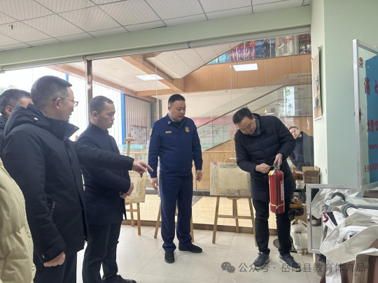 1月3日,县教体局党委书记、局长李林带领李智勇党委和胡志锋总督学在县中心幼儿园督查工程建设和校园周边安全工作情况,局安全股参与督查。 六、县教体局联合县消防大队开展校外培训机构消防安全工作