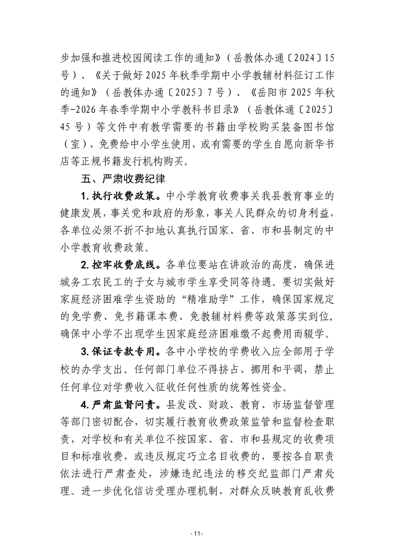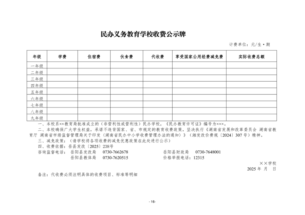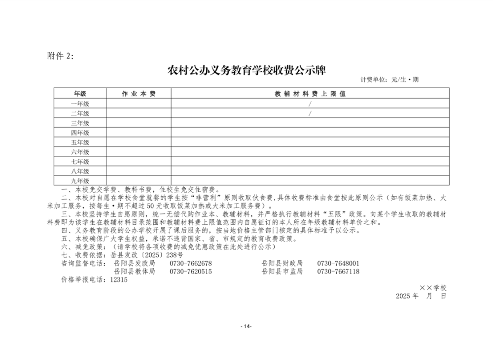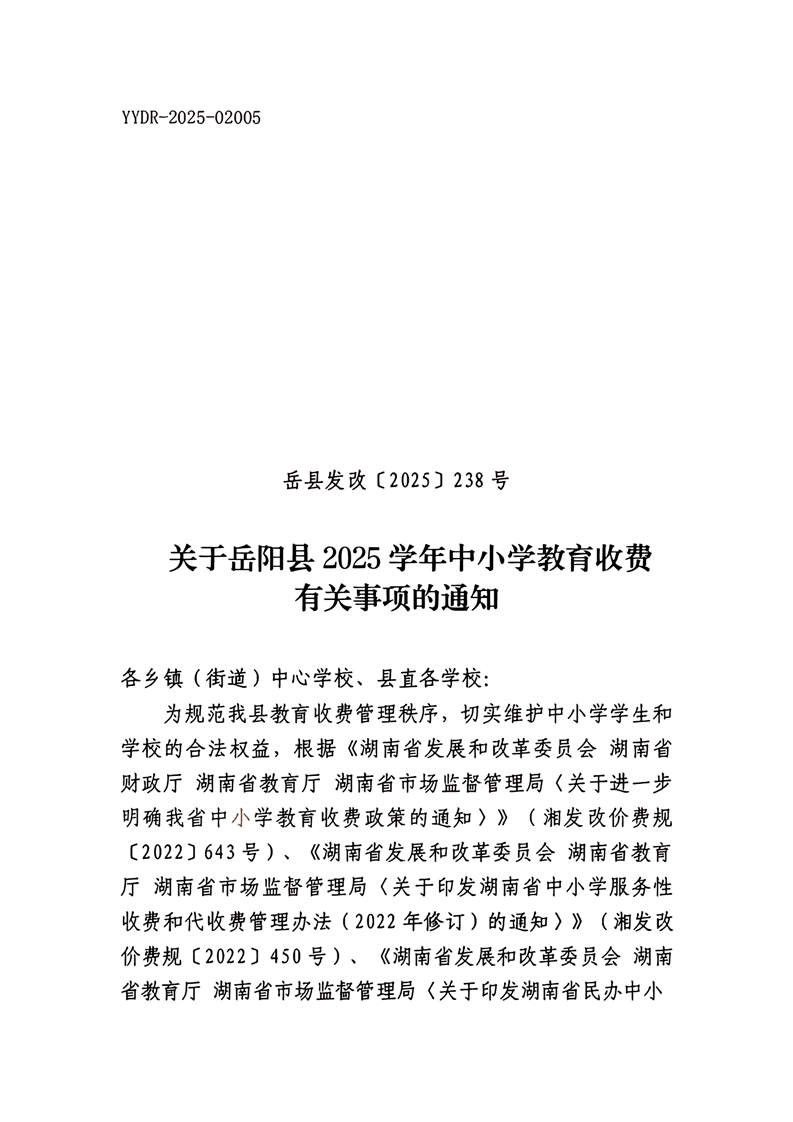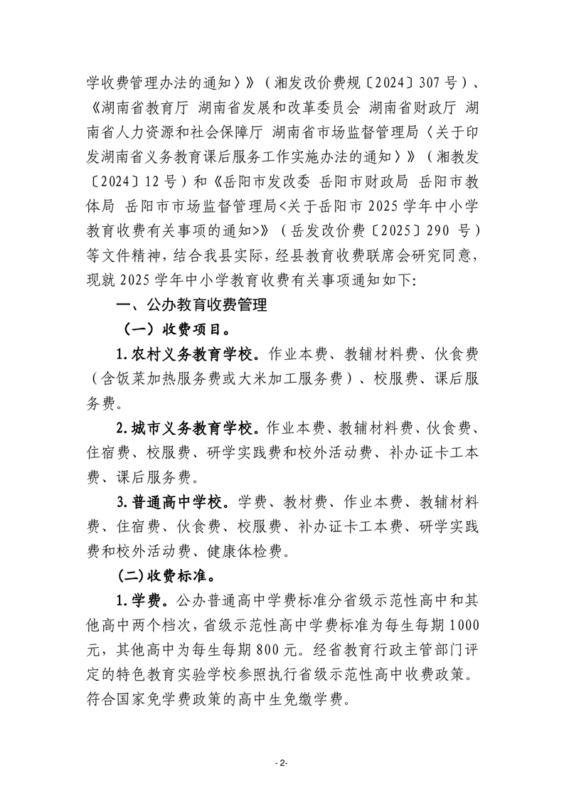 关于岳阳县2025学年中小学教育收费有关事项的通知
