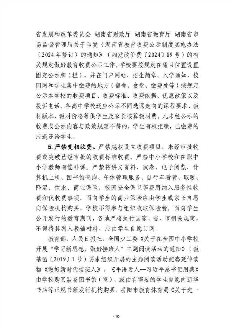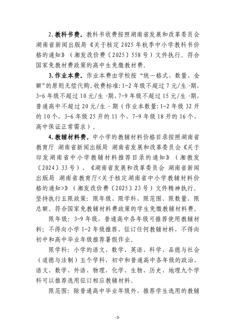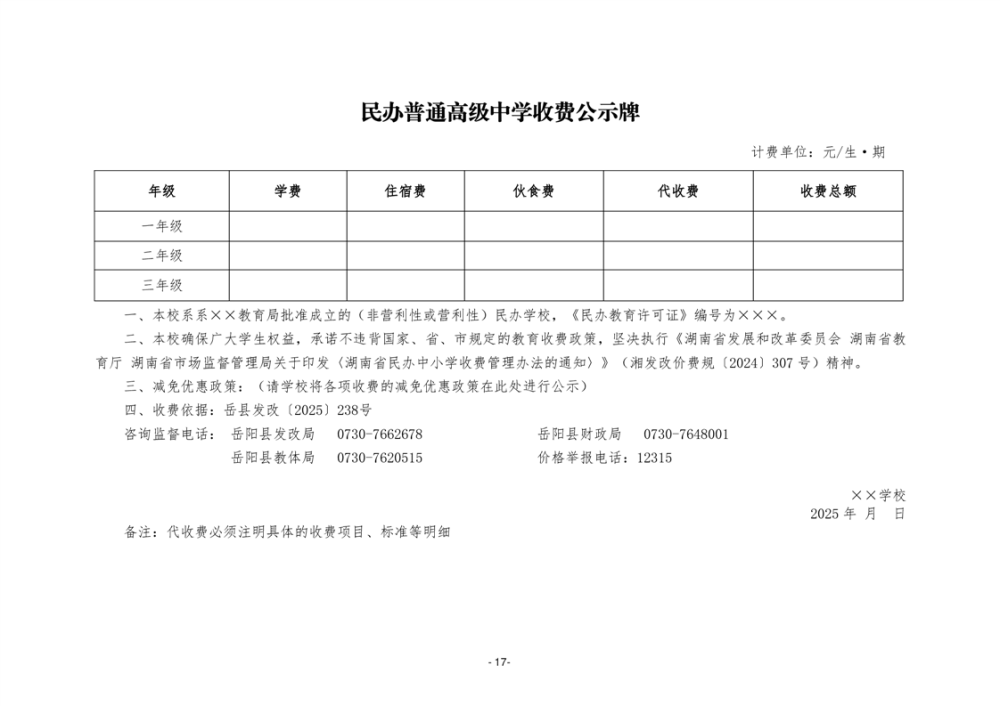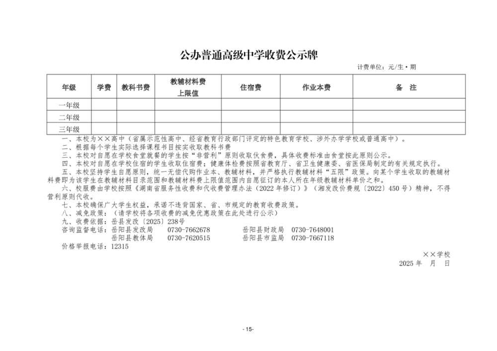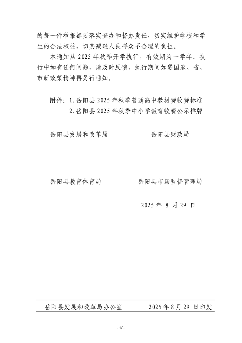 关于岳阳县2025学年中小学教育收费有关事项的通知