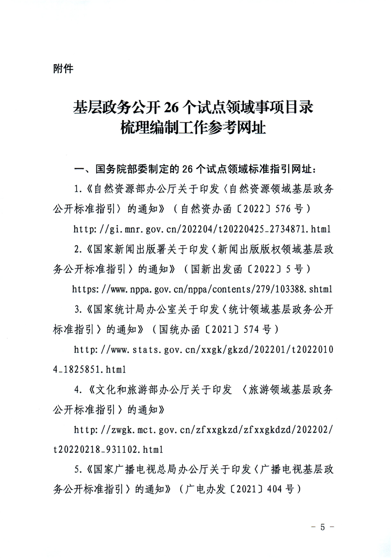 关于做好基层政务公开26个试点领域事项目录梳理编制工作的通知