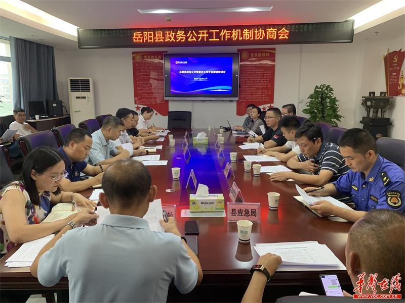 华声在线9月12日讯(通讯员 续鼎)为深化“放管服”改革,扎实推进“揭榜竞优”工作,9月12日,由岳阳县政务服务中心牵头,组织县政府办、县司法局、县融媒体中心等11家单位召开了岳阳县政务公开工作机制协商会。