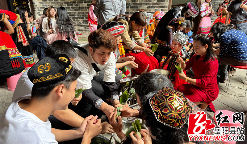 岳阳县融媒体中心6月6日讯(记者 尹宇豪 李佳琦)当代表汉族文化习俗的端午节遇上少数民族学生,当代表江南风情的张谷英古村落遇上包粽子活动,又是怎样的一种体验呢?6月5日,在端午节来临之际,由县委统战部主办的“民族团结一家亲 万水千山'粽'是情”为主题的民族团结进步创建联谊活动,在张谷英镇举行,来自湖南石油化工职业技术学院维吾尔族、朝鲜族、彝族等少数民族的学生们在古村落里感受别具风味的汉族民俗文化。